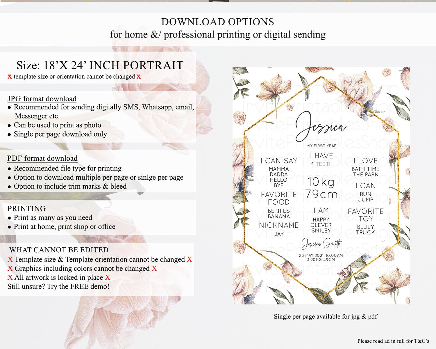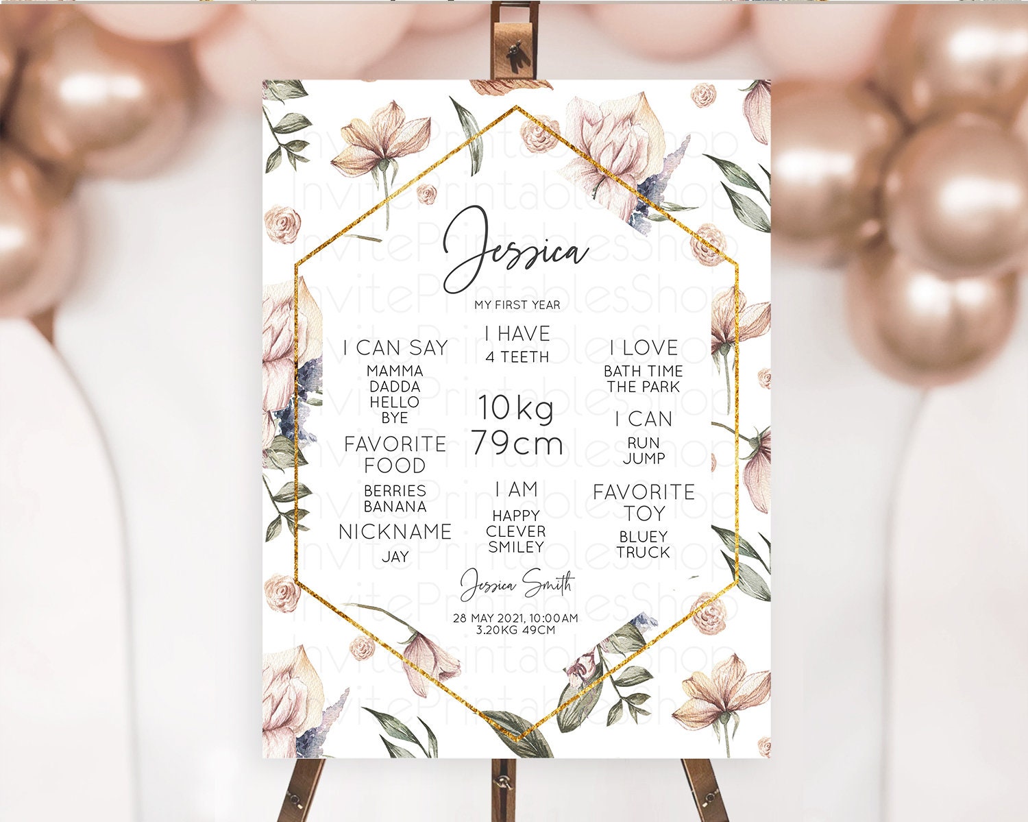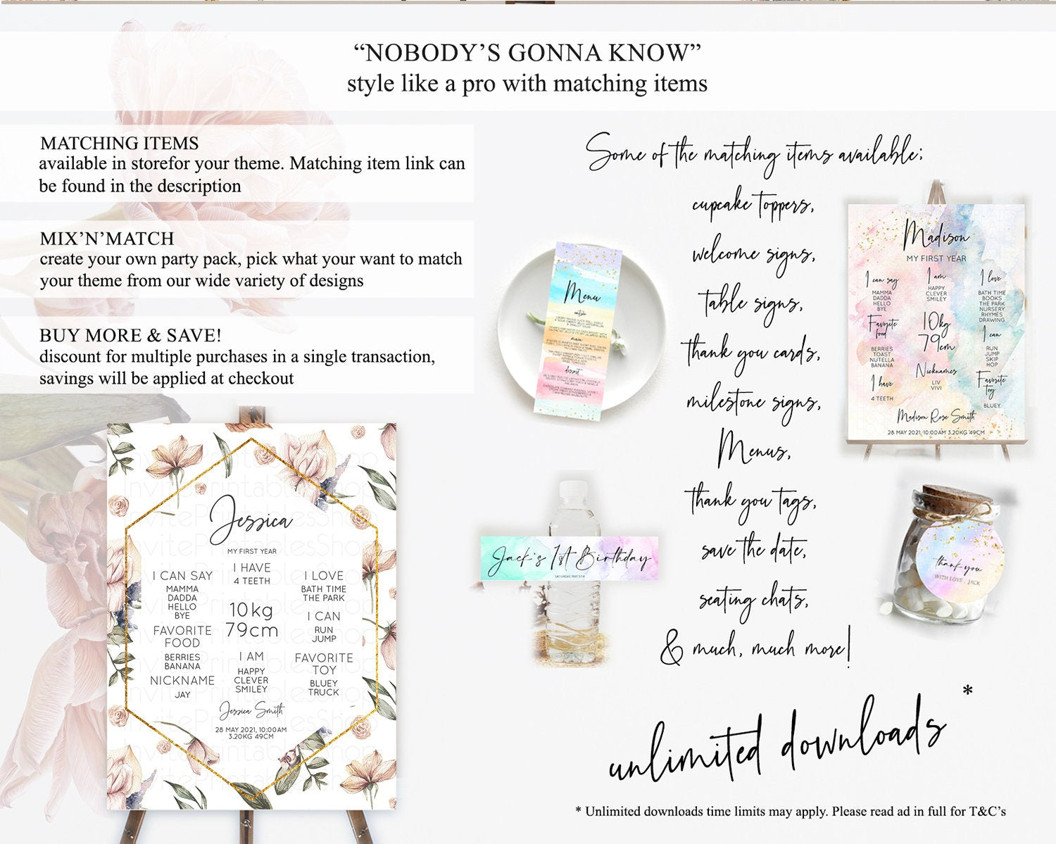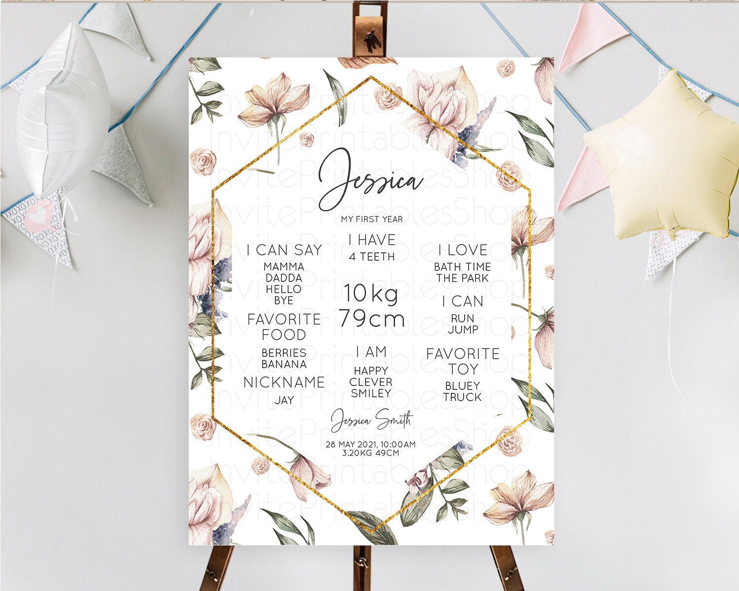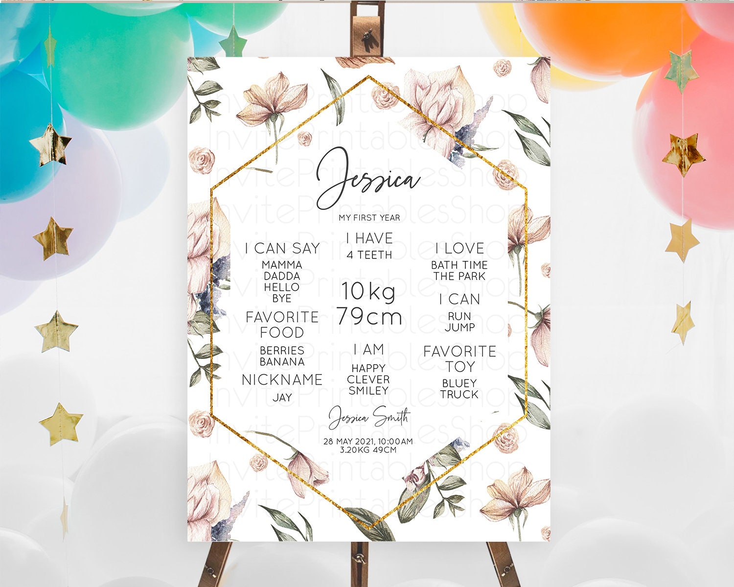 Secret Garden Milestone Board Wildflower First Birthday Milestone Poster Pastel Flowers Milestone Boho Wildflower 1st Birthday Sign D10504