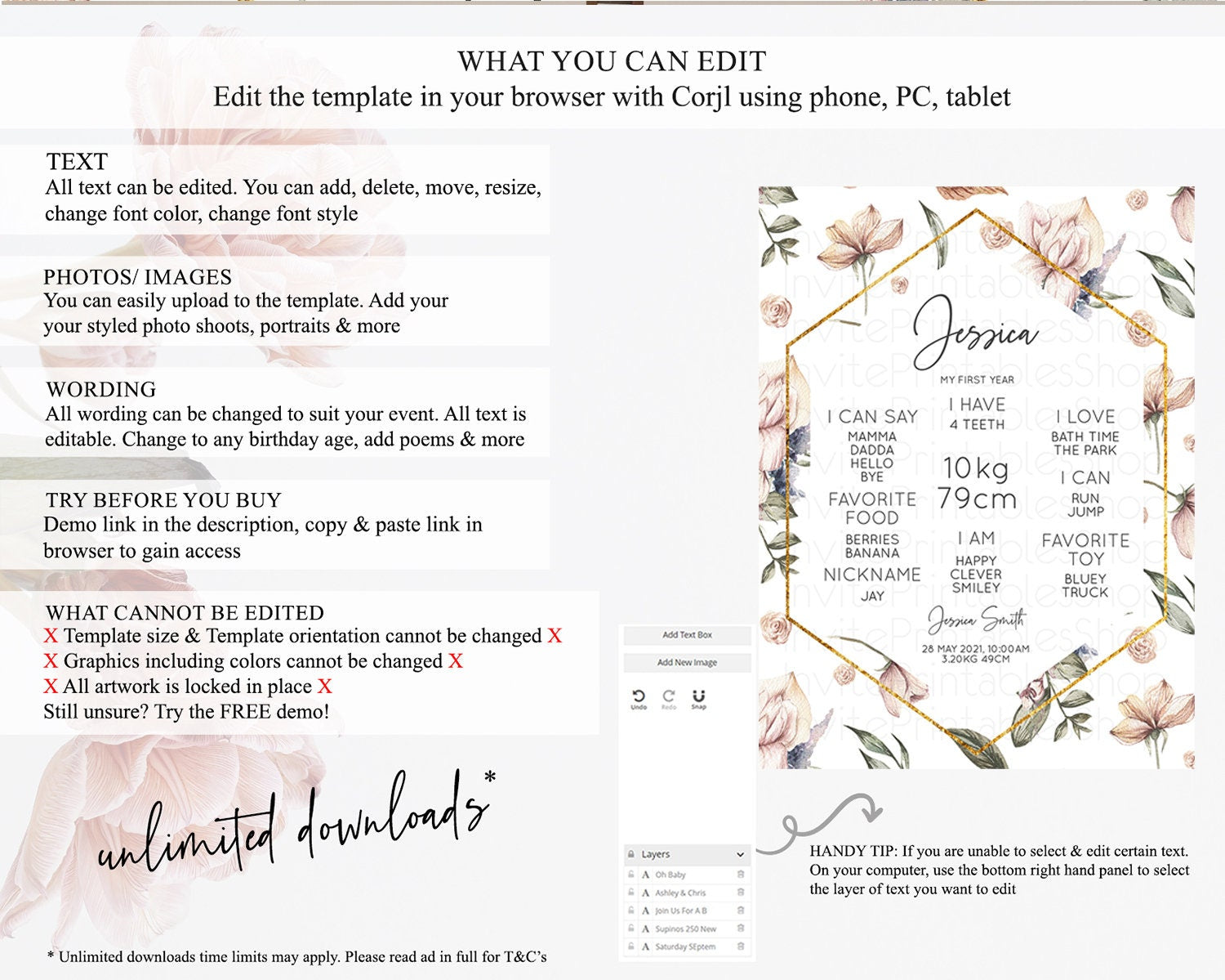 • After purchase, Corjl emails your editing link. Allow up to 15 minutes for delivery.