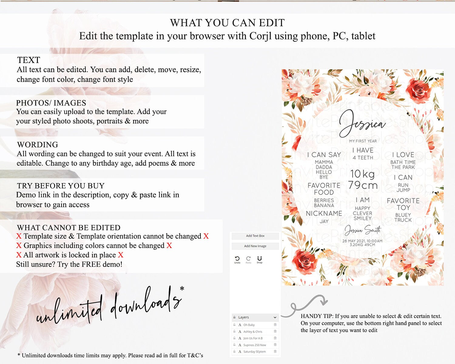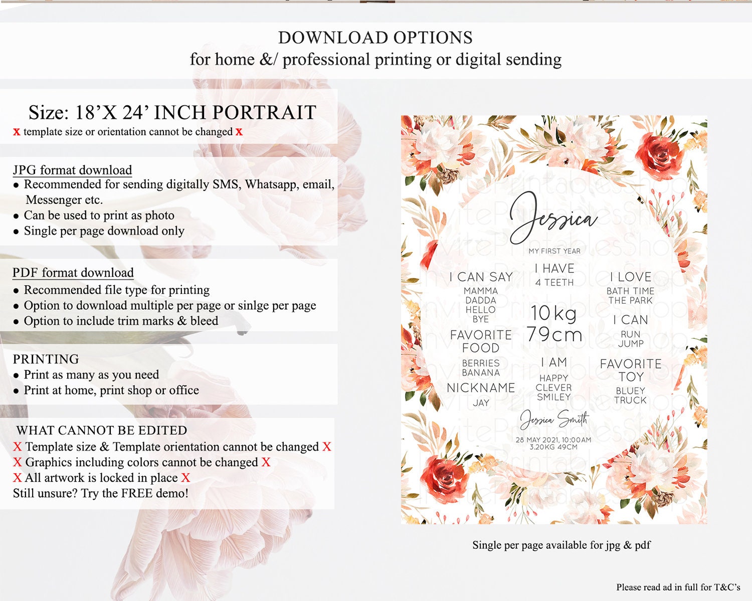 • Template size & orientation cannot be changed. Please use the demo link to confirm this product suits your needs.