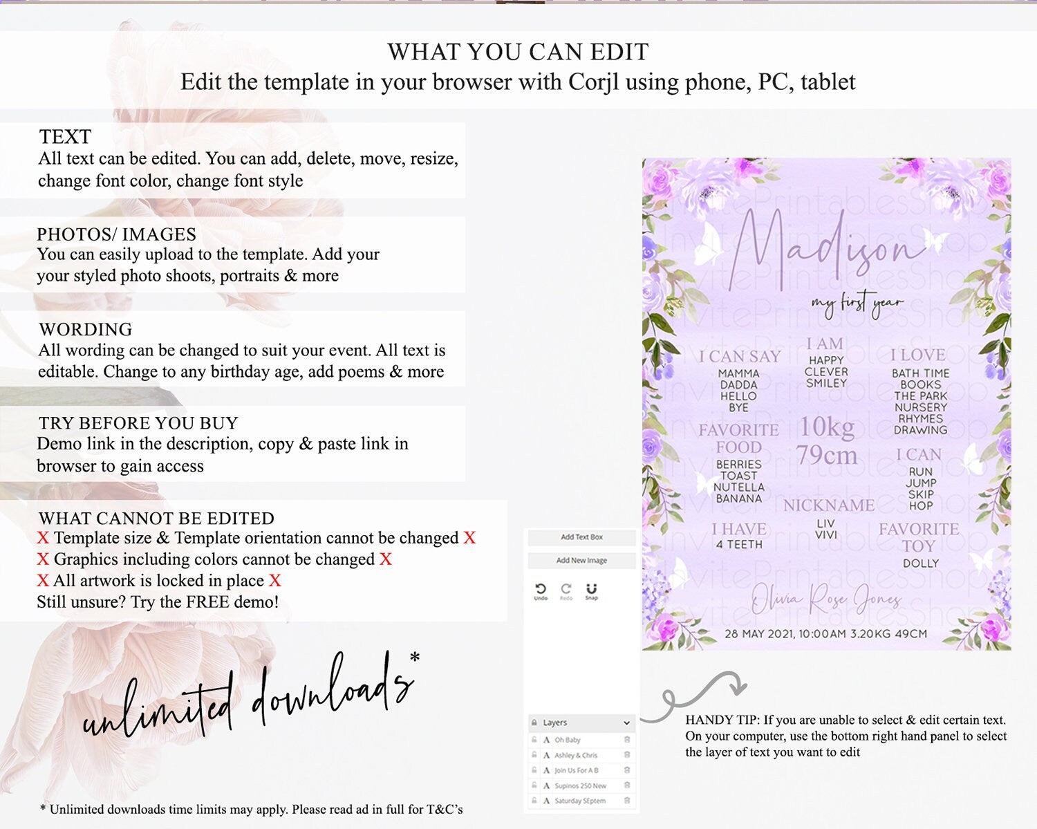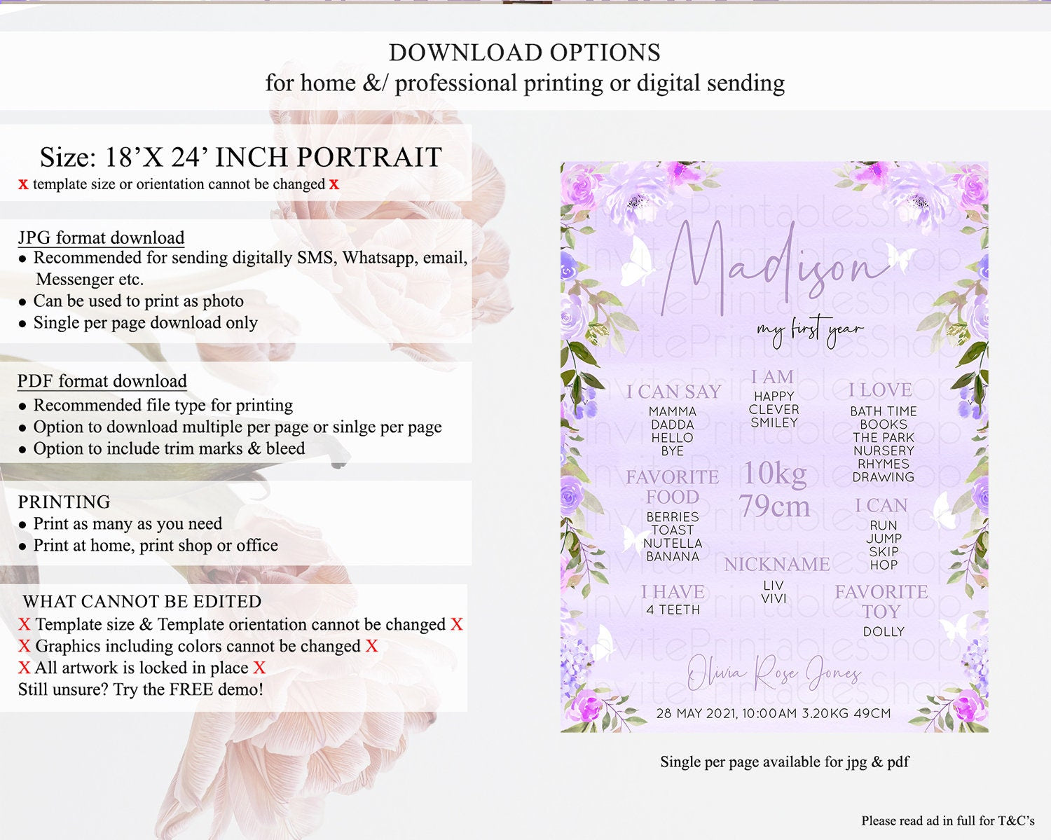 • Template size & orientation cannot be changed. Please use the demo link to confirm this product suits your needs.
