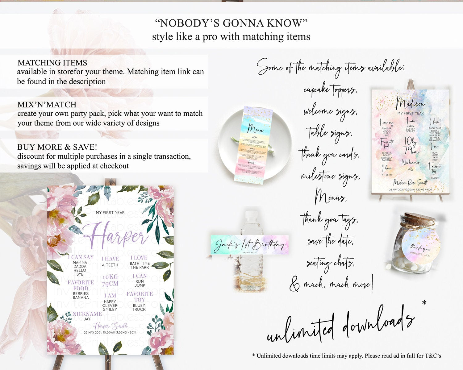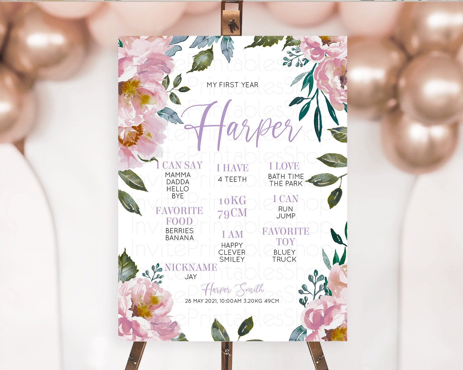 Secret Garden Milestone Board Wildflower First Birthday Milestone Poster Pastel Flowers Milestone Boho Wildflower 1st Birthday Sign D10729