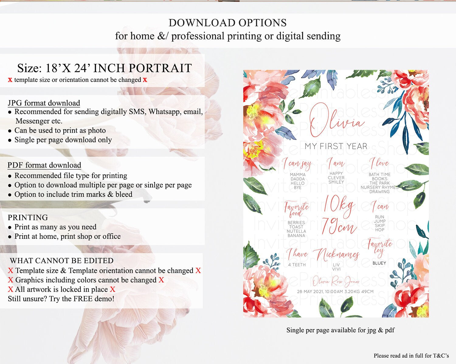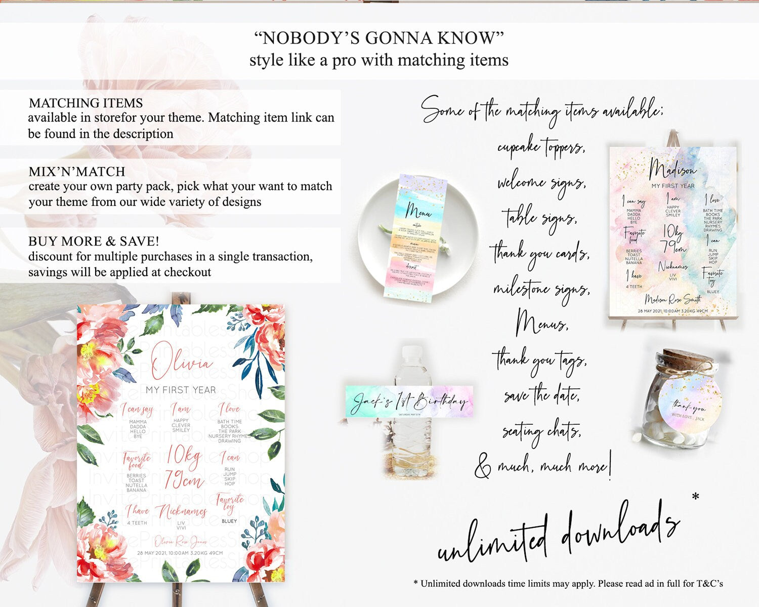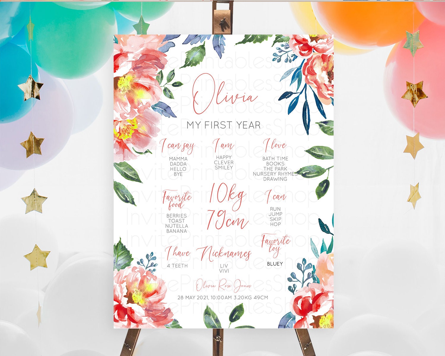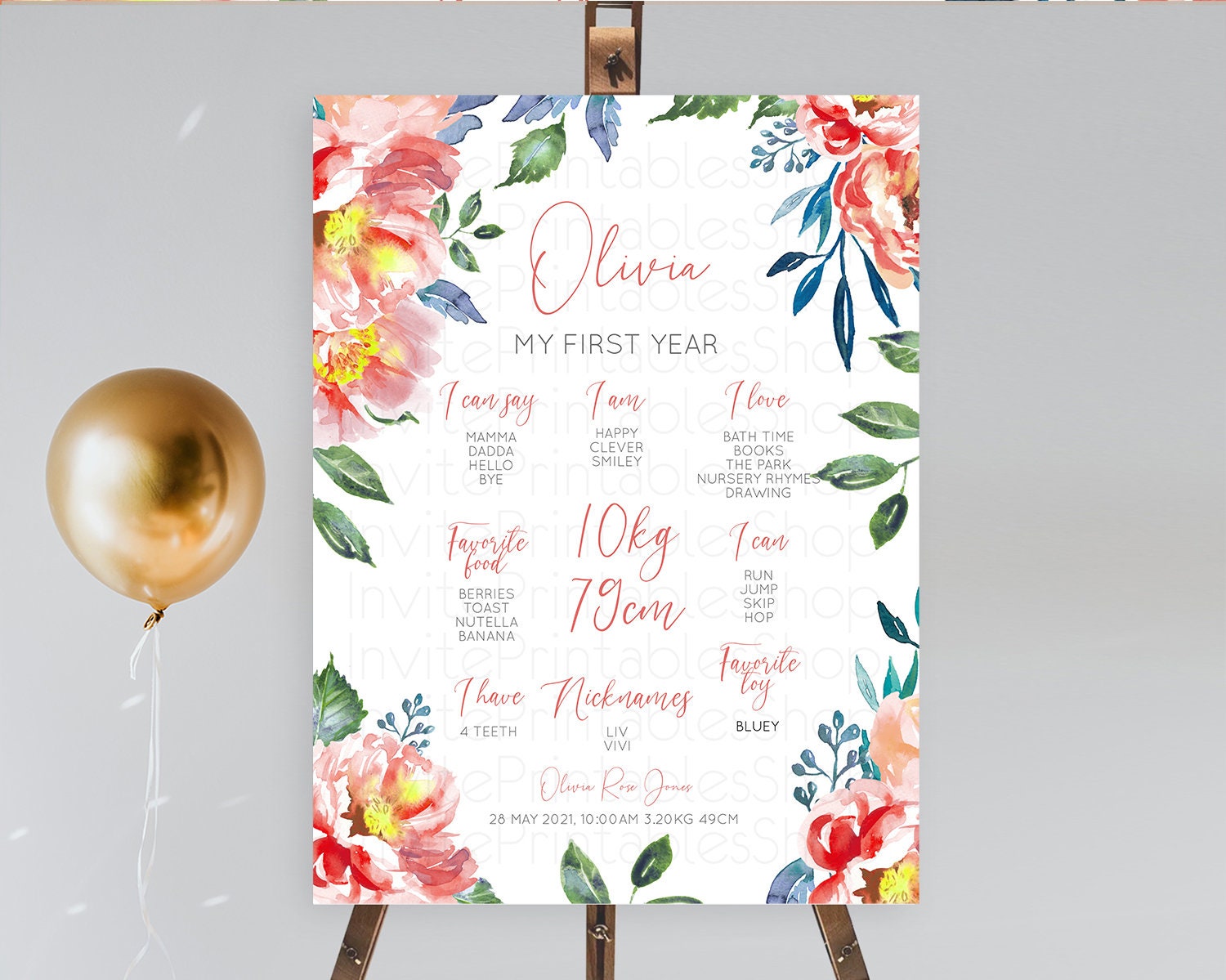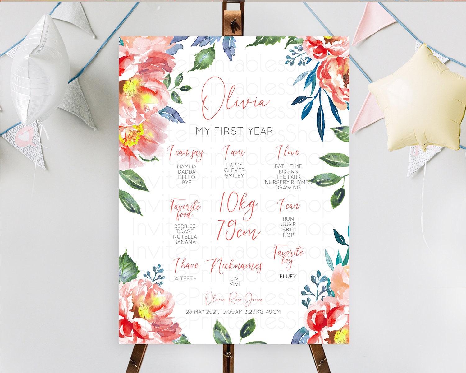 Secret Garden Milestone Board Wildflower First Birthday Milestone Poster Pastel Flowers Milestone Boho Wildflower 1st Birthday Sign D10751