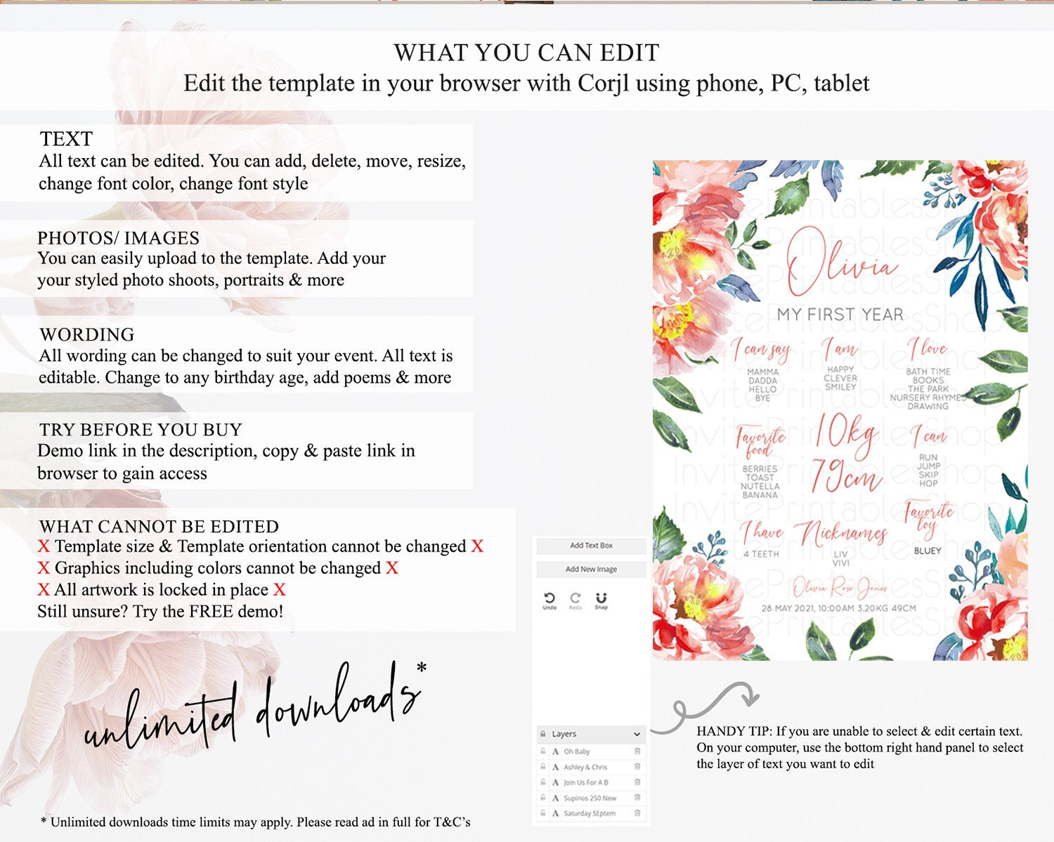 • After purchase, Corjl emails your editing link. Allow up to 15 minutes for delivery.
