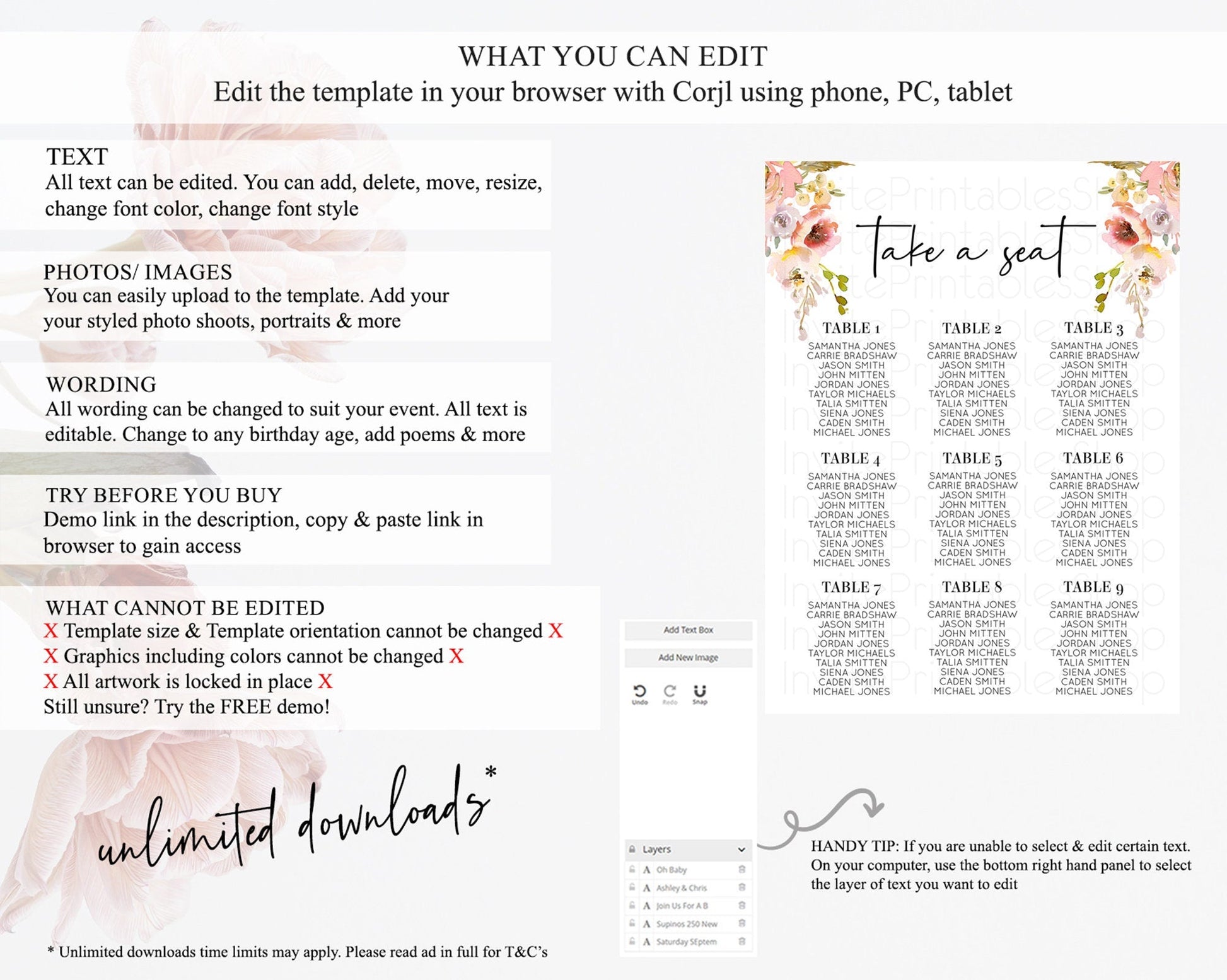 Secret Garden Seating Chart Wildflower Seating Chart Pastel Flowers Seating Chart Enchanted Garden Boho Floral Take A Seat Decor D10194