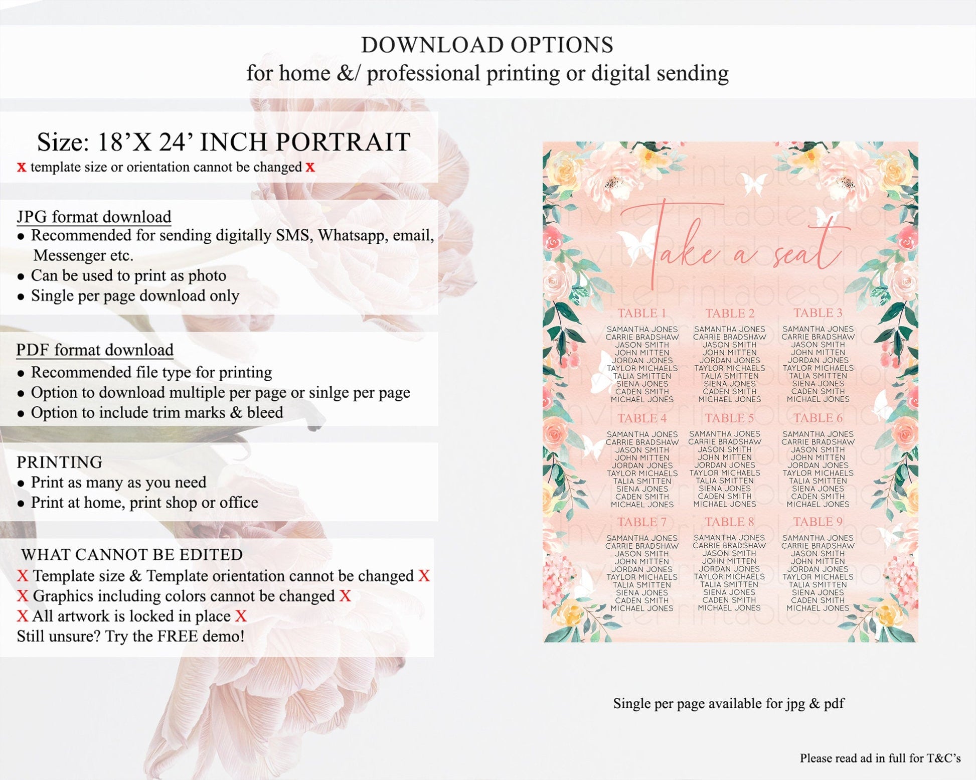 • Template size & orientation cannot be changed. Please use the demo link to confirm this product suits your needs.