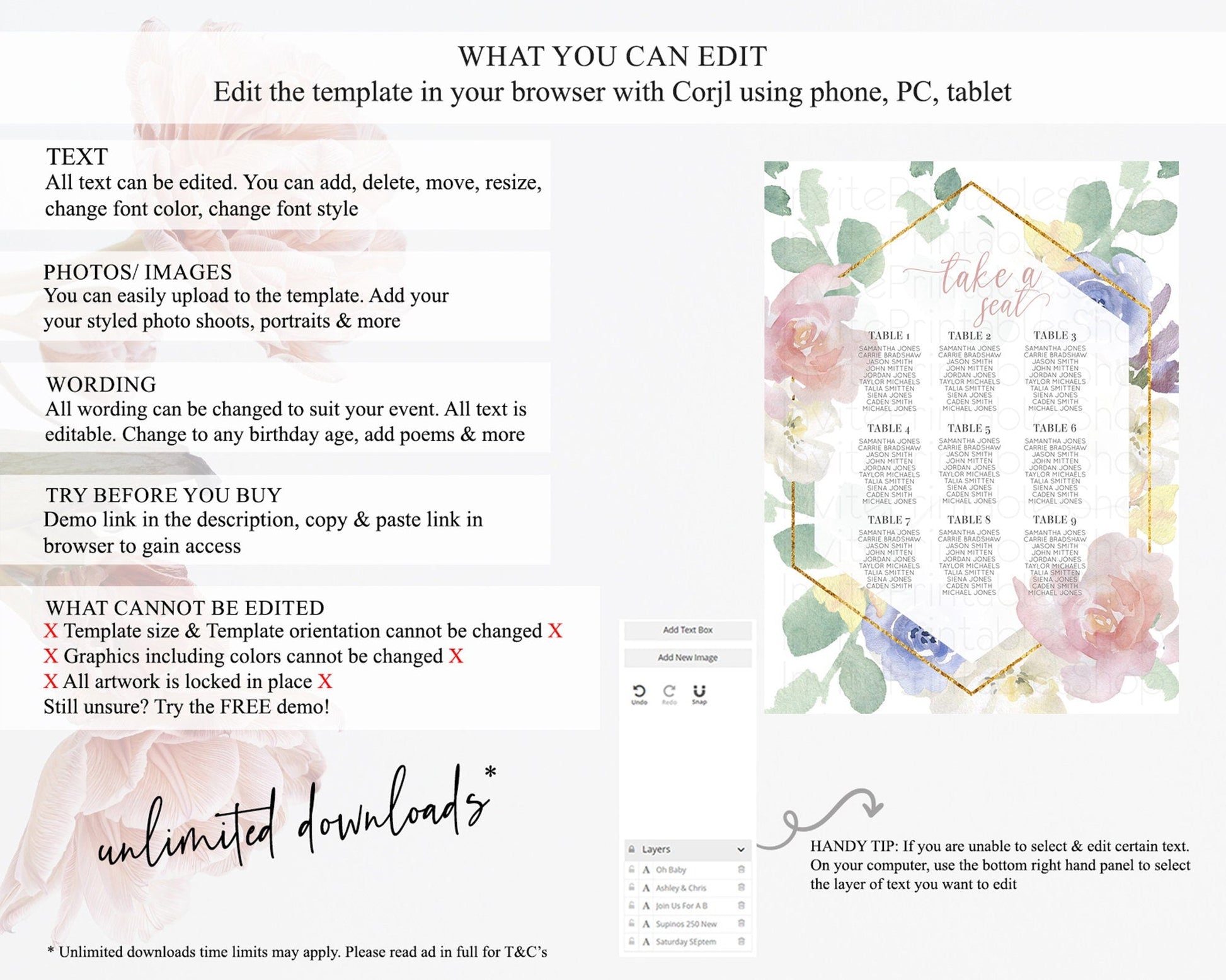 Secret Garden Seating Chart Wildflower Seating Chart Pastel Flowers Seating Chart Enchanted Garden Boho Floral Take A Seat Decor D10254