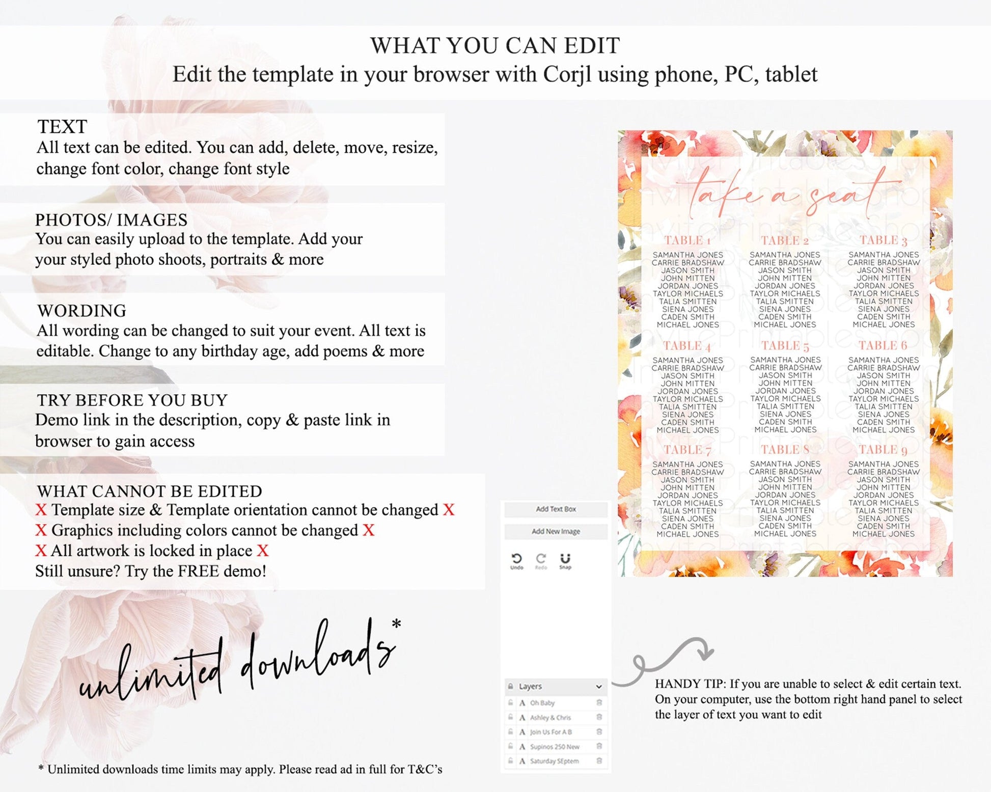 Secret Garden Seating Chart Wildflower Seating Chart Pastel Flowers Seating Chart Enchanted Garden Boho Floral Take A Seat Decor D10280