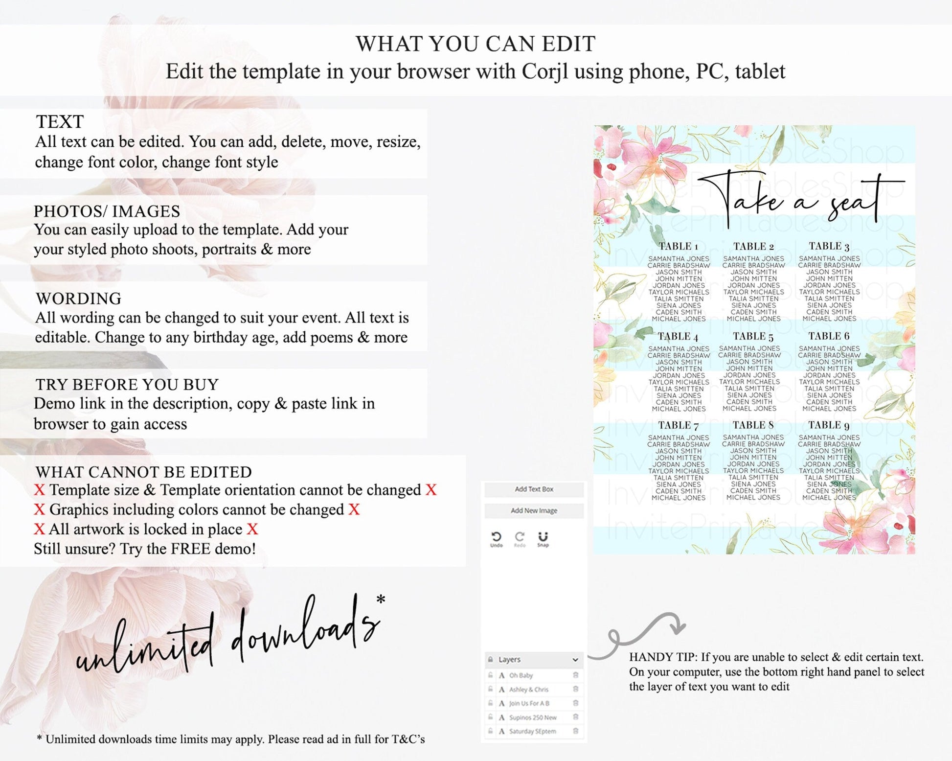 Secret Garden Seating Chart Wildflower Seating Chart Pastel Flowers Seating Chart Enchanted Garden Boho Floral Take A Seat Decor D10303