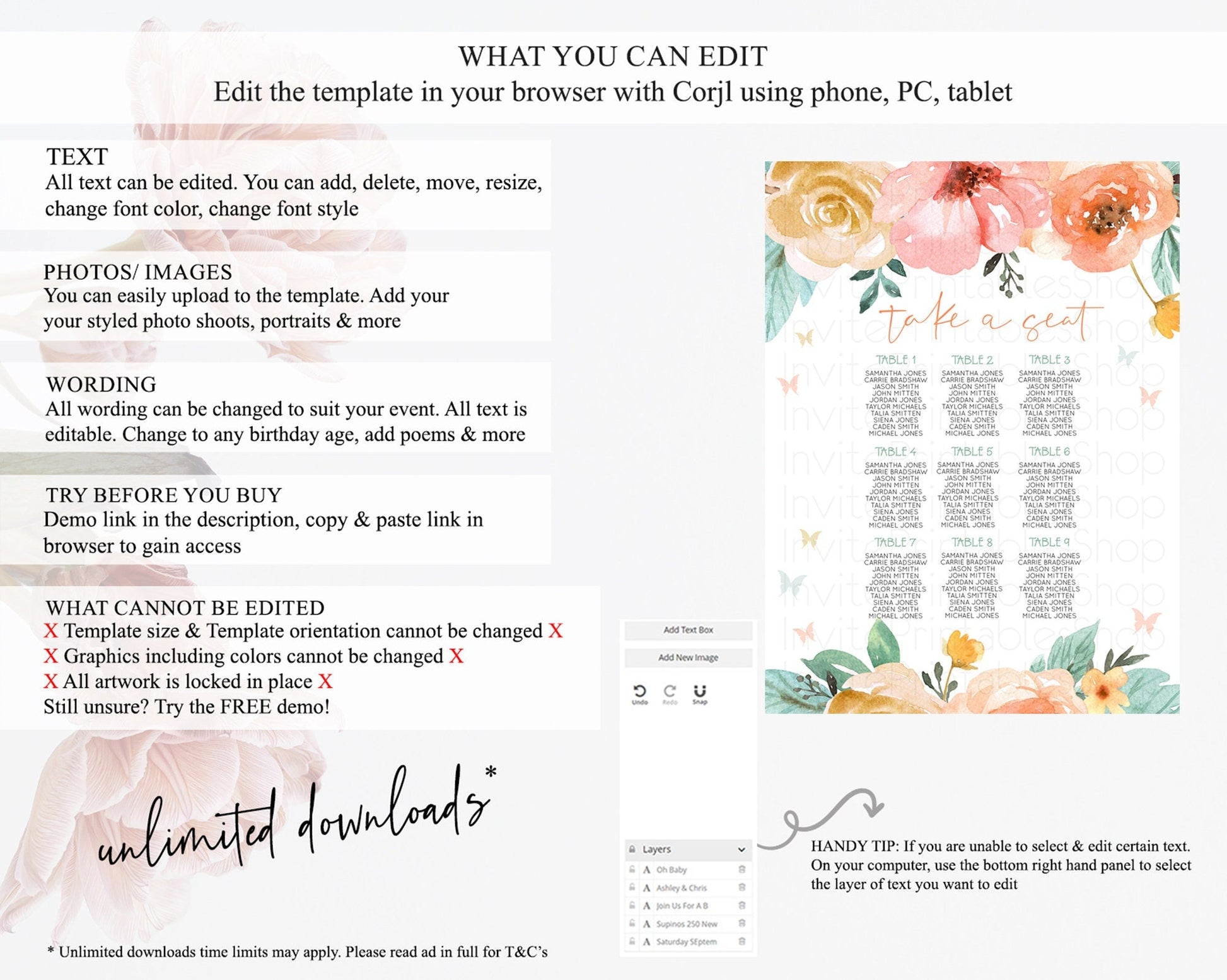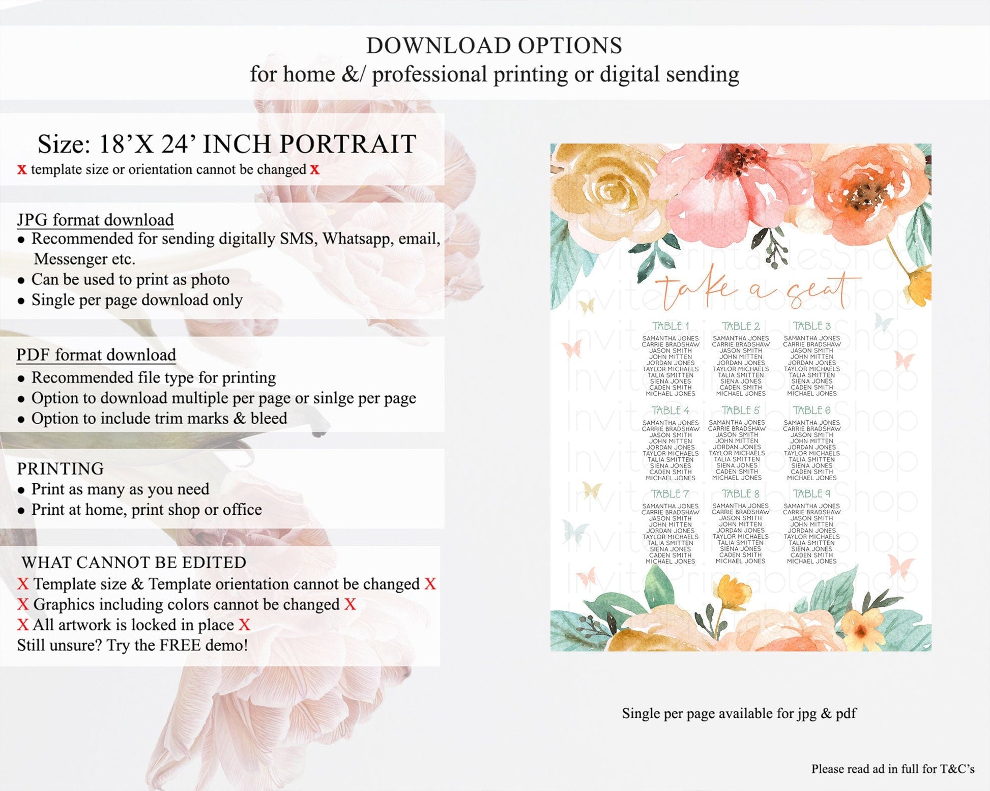 Secret Garden Seating Chart Wildflower Seating Chart Pastel Flowers Seating Chart Enchanted Garden Boho Floral Take A Seat Decor D10347