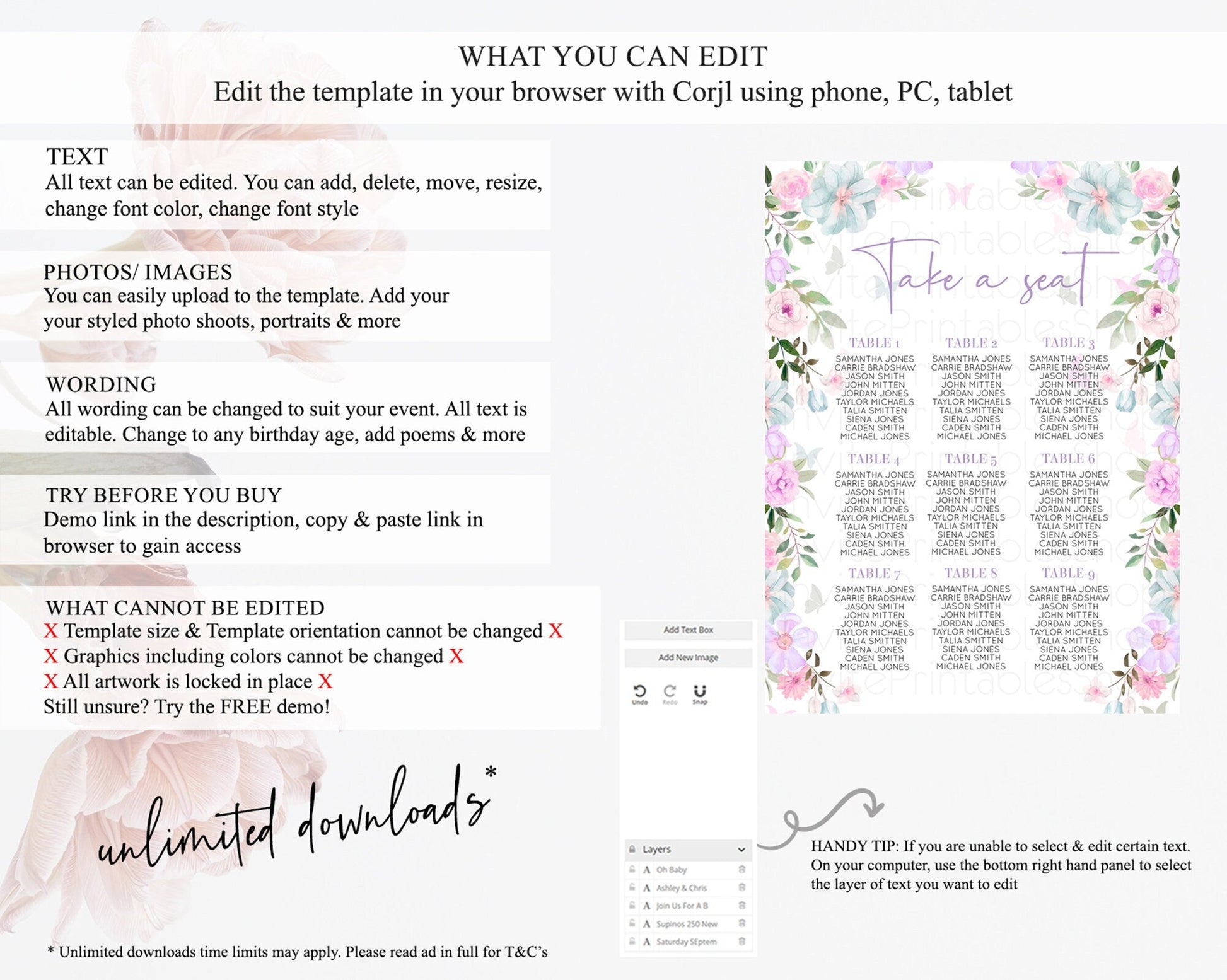 Secret Garden Seating Chart Wildflower Seating Chart Pastel Flowers Seating Chart Enchanted Garden Boho Floral Take A Seat Decor D10494