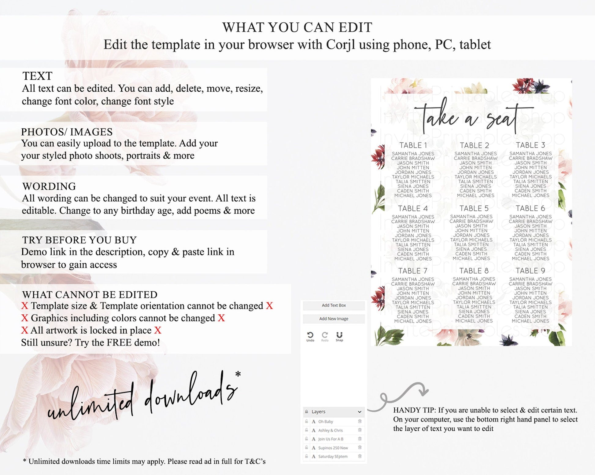 Secret Garden Seating Chart Wildflower Seating Chart Pastel Flowers Seating Chart Enchanted Garden Boho Floral Take A Seat Decor D10538
