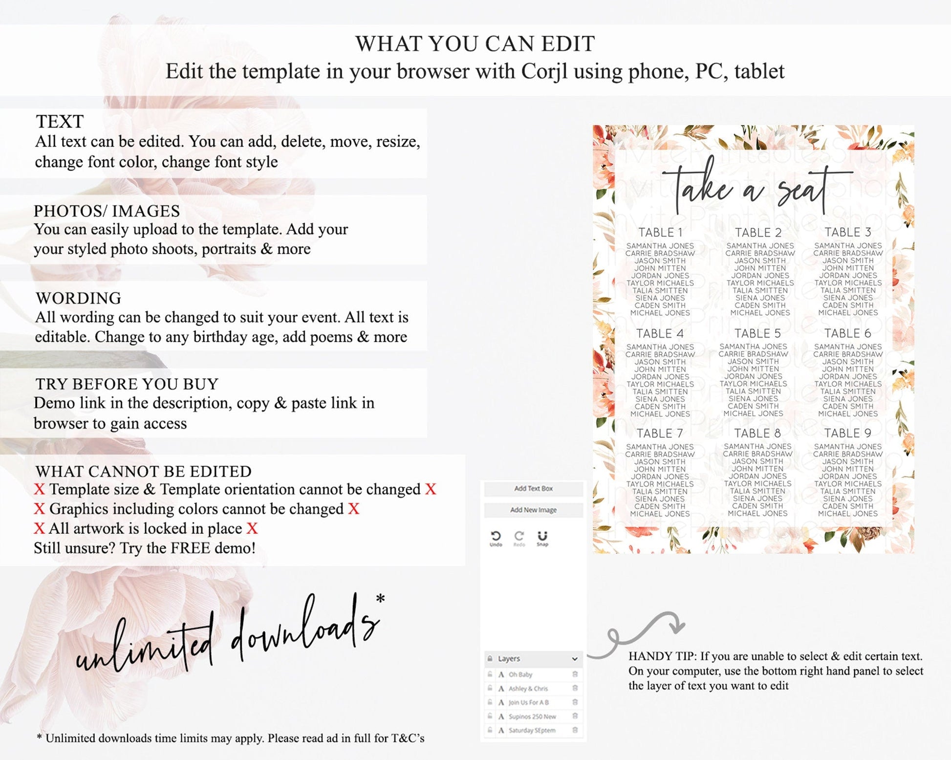 Secret Garden Seating Chart Wildflower Seating Chart Pastel Flowers Seating Chart Enchanted Garden Boho Floral Take A Seat Decor D10540