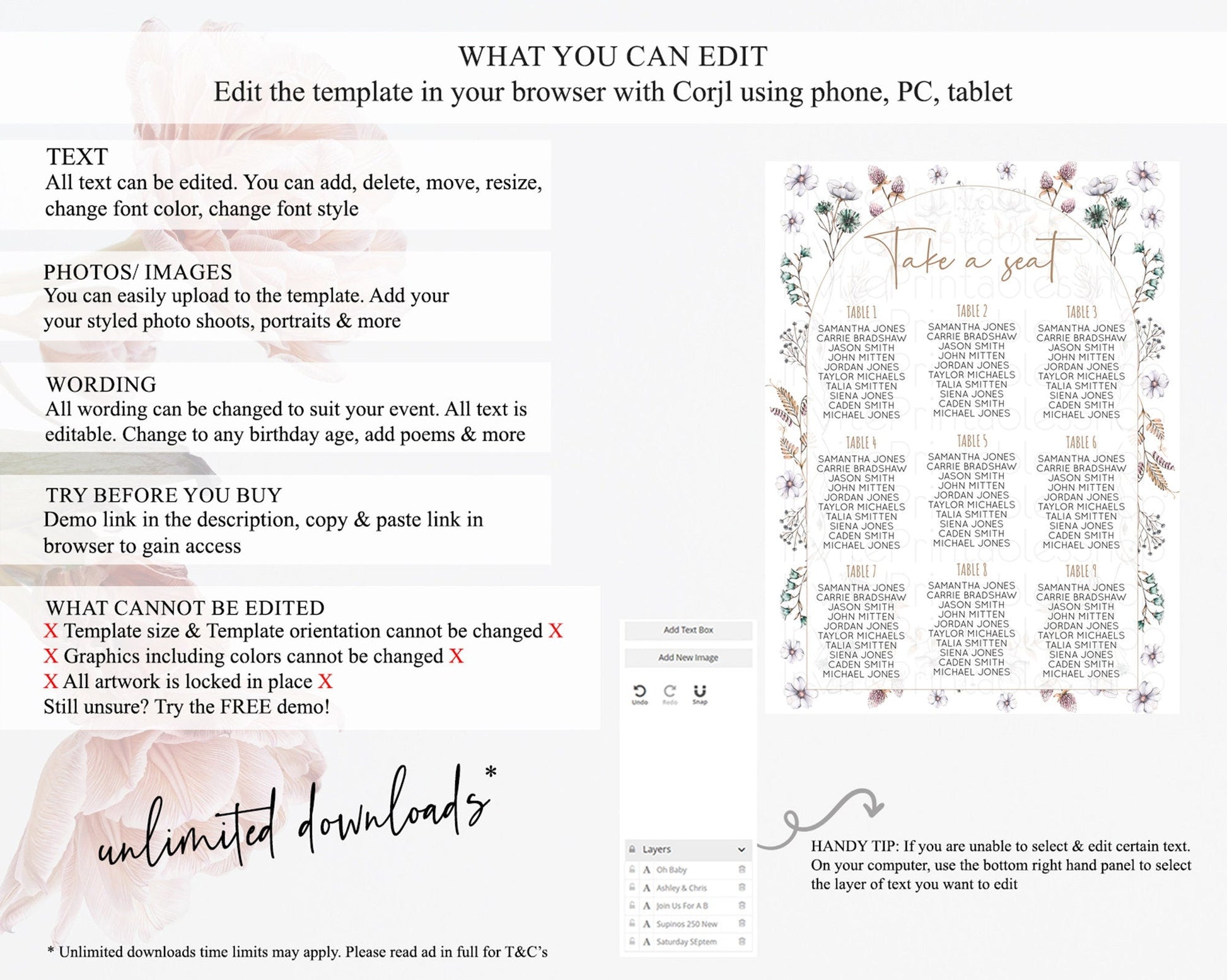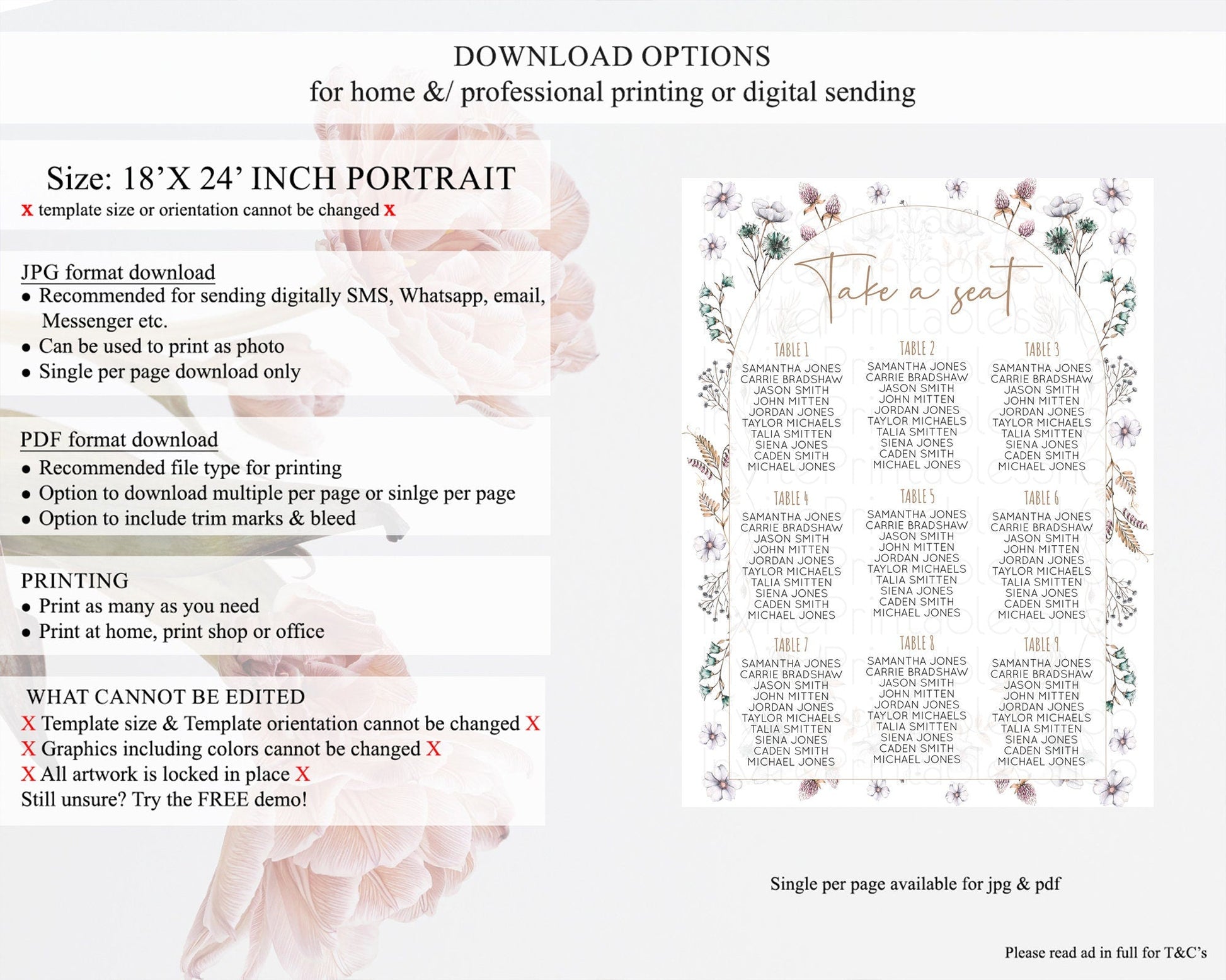 Secret Garden Seating Chart Wildflower Seating Chart Pastel Flowers Seating Chart Enchanted Garden Boho Floral Take A Seat Decor D10604