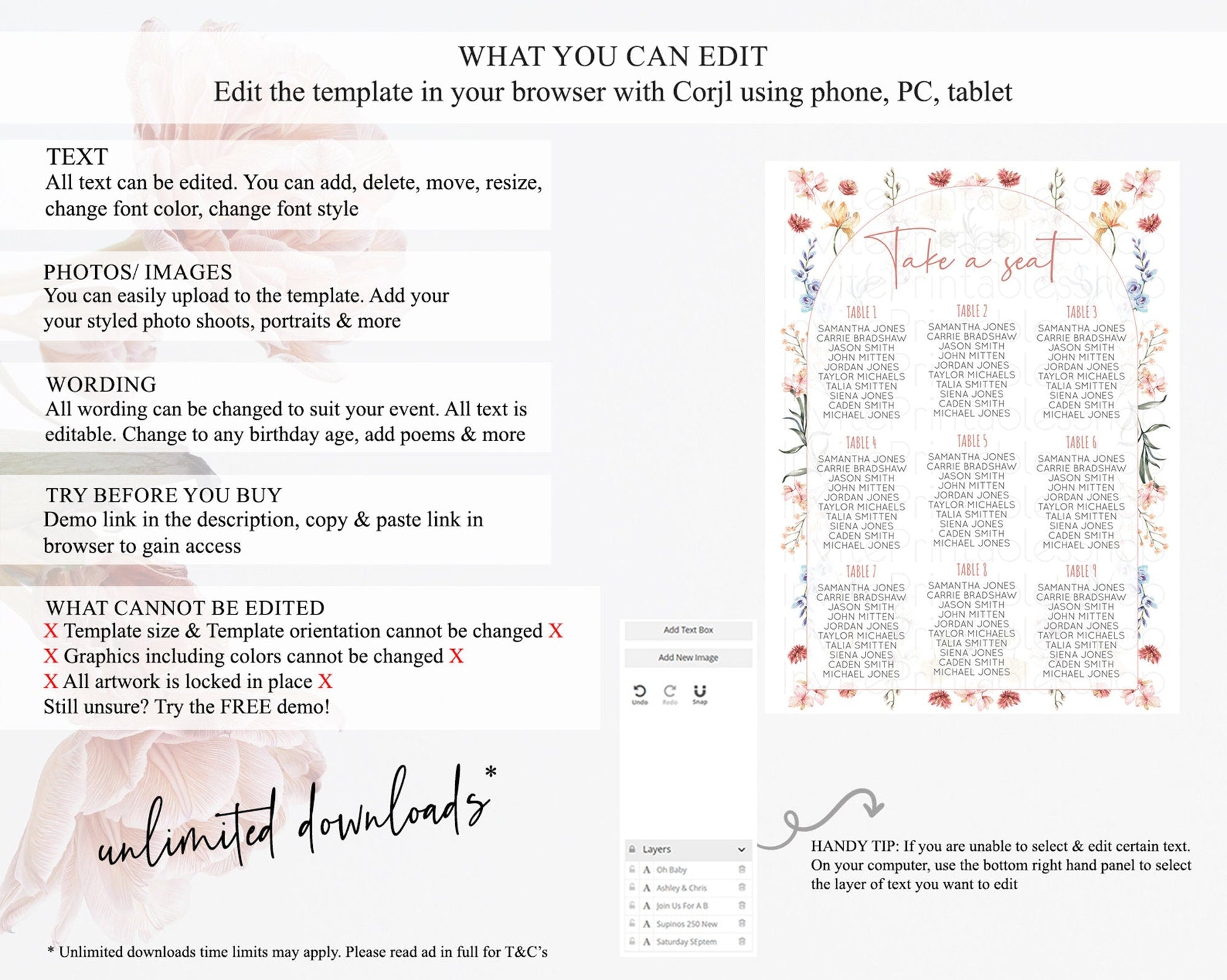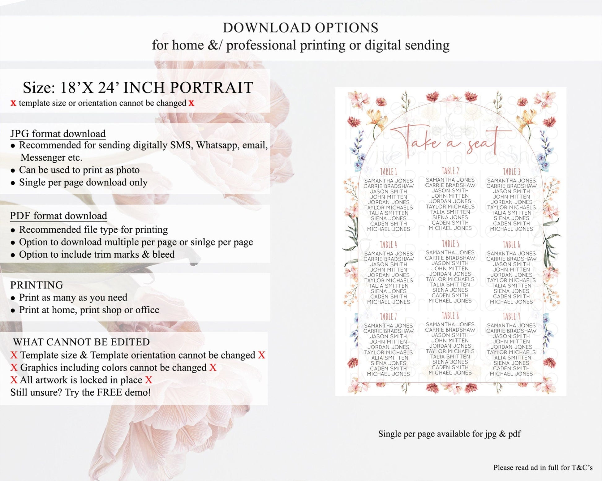Secret Garden Seating Chart Wildflower Seating Chart Pastel Flowers Seating Chart Enchanted Garden Boho Floral Take A Seat Decor D10682