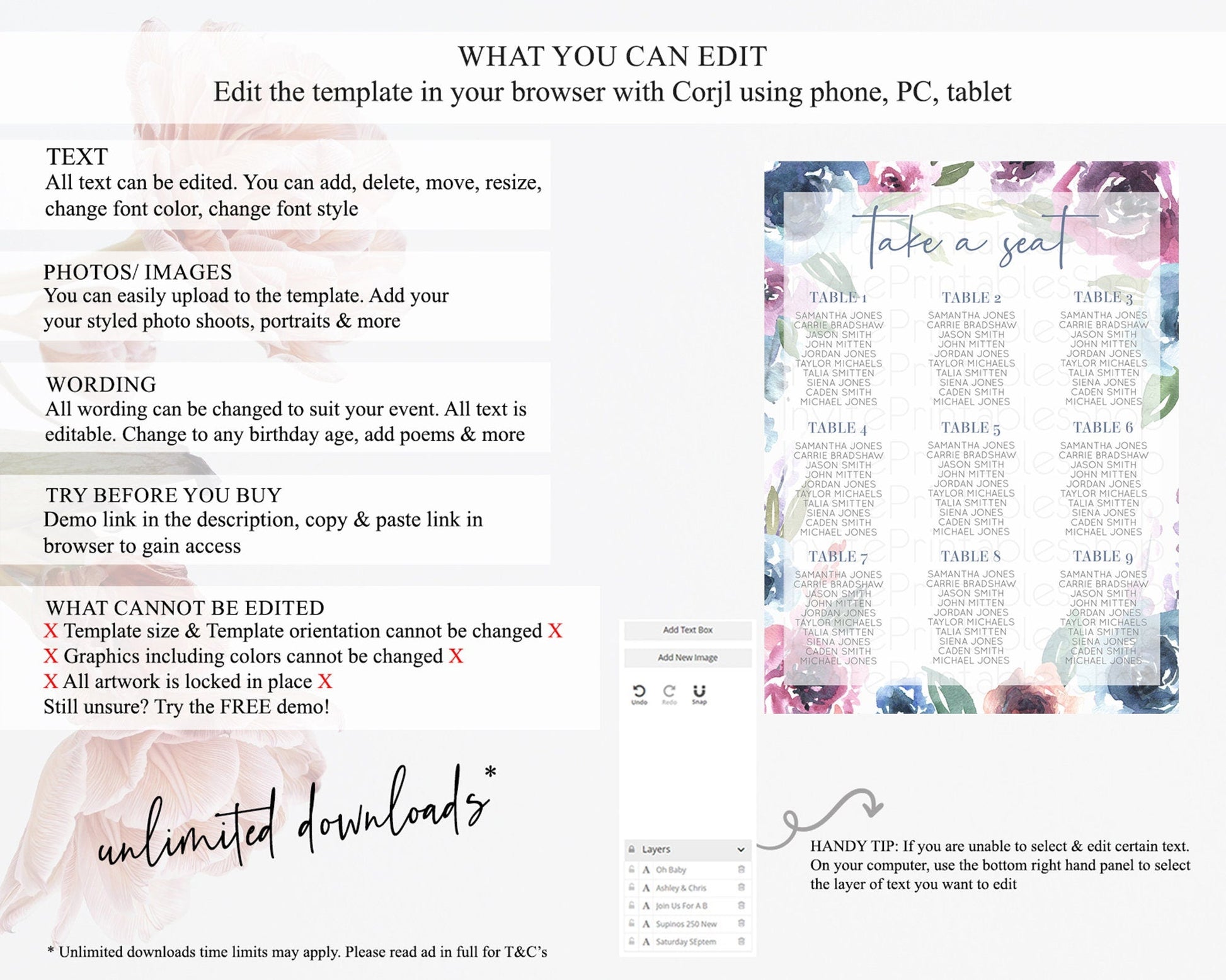 Secret Garden Seating Chart Wildflower Seating Chart Pastel Flowers Seating Chart Enchanted Garden Boho Floral Take A Seat Decor D10780