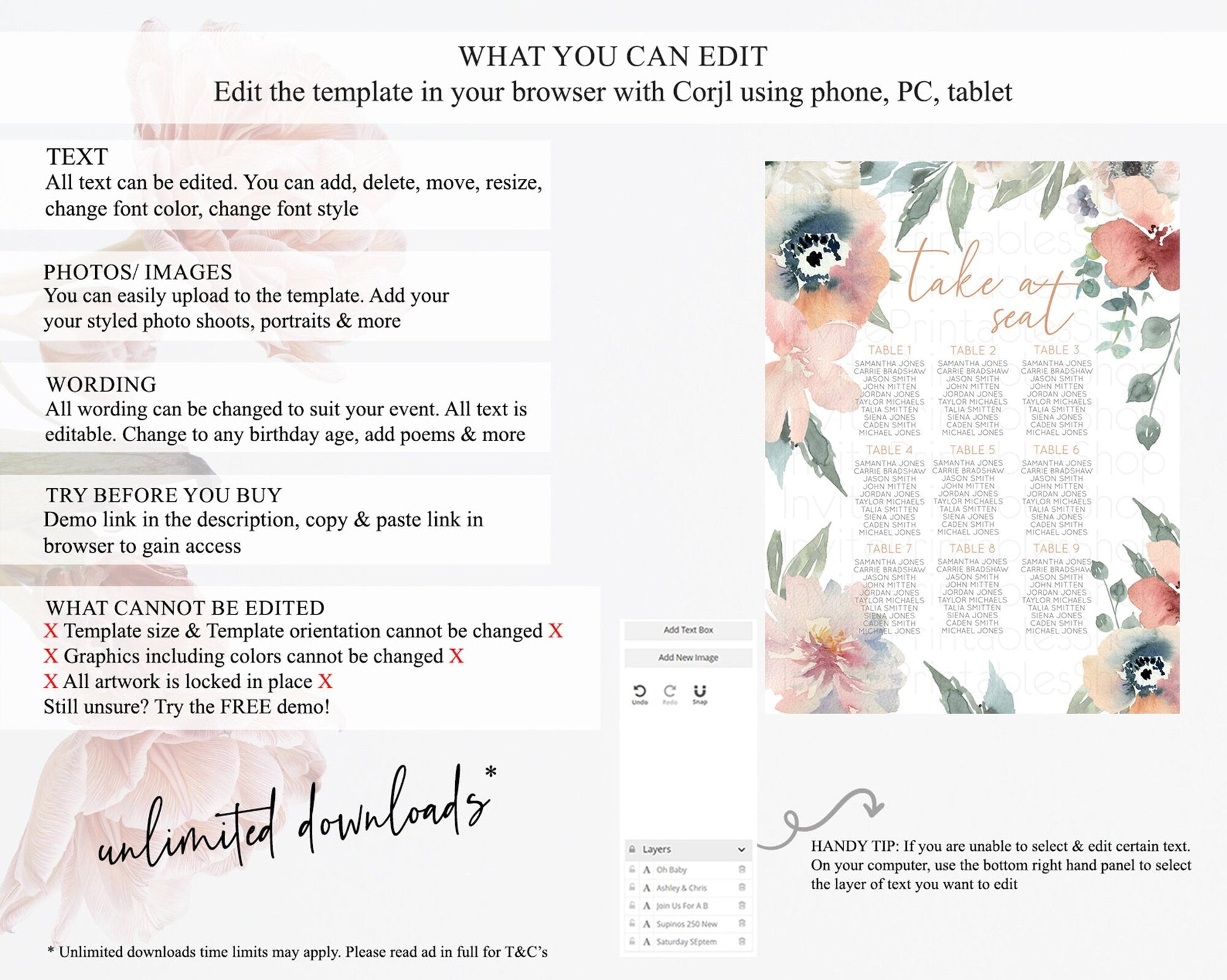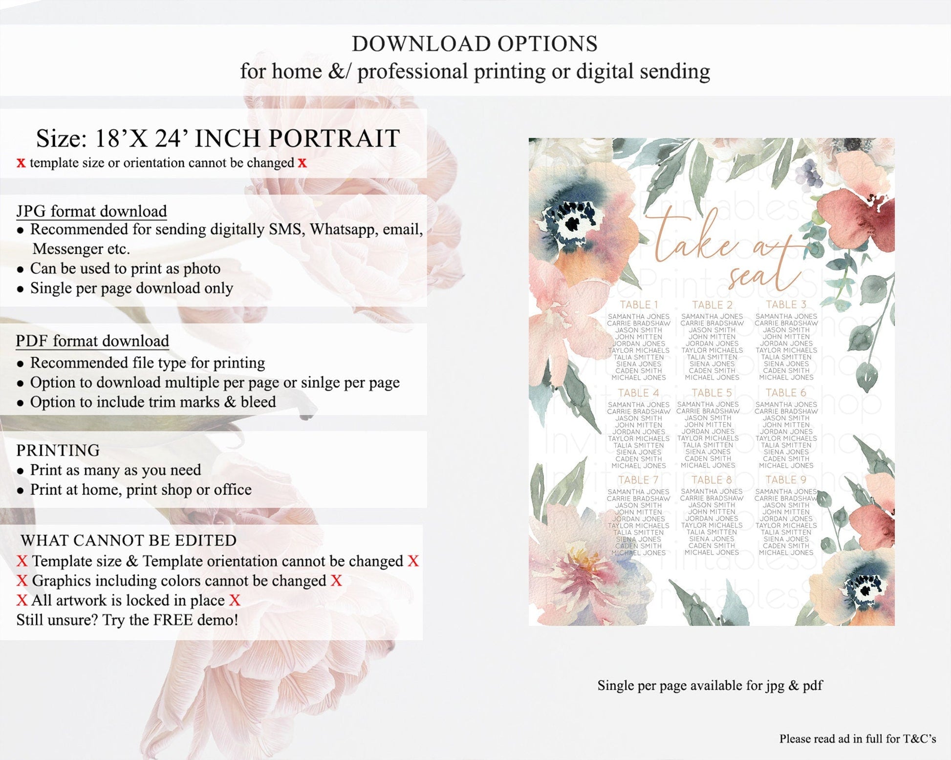 Secret Garden Seating Chart Wildflower Seating Chart Pastel Flowers Seating Chart Enchanted Garden Boho Floral Take A Seat Decor D10787