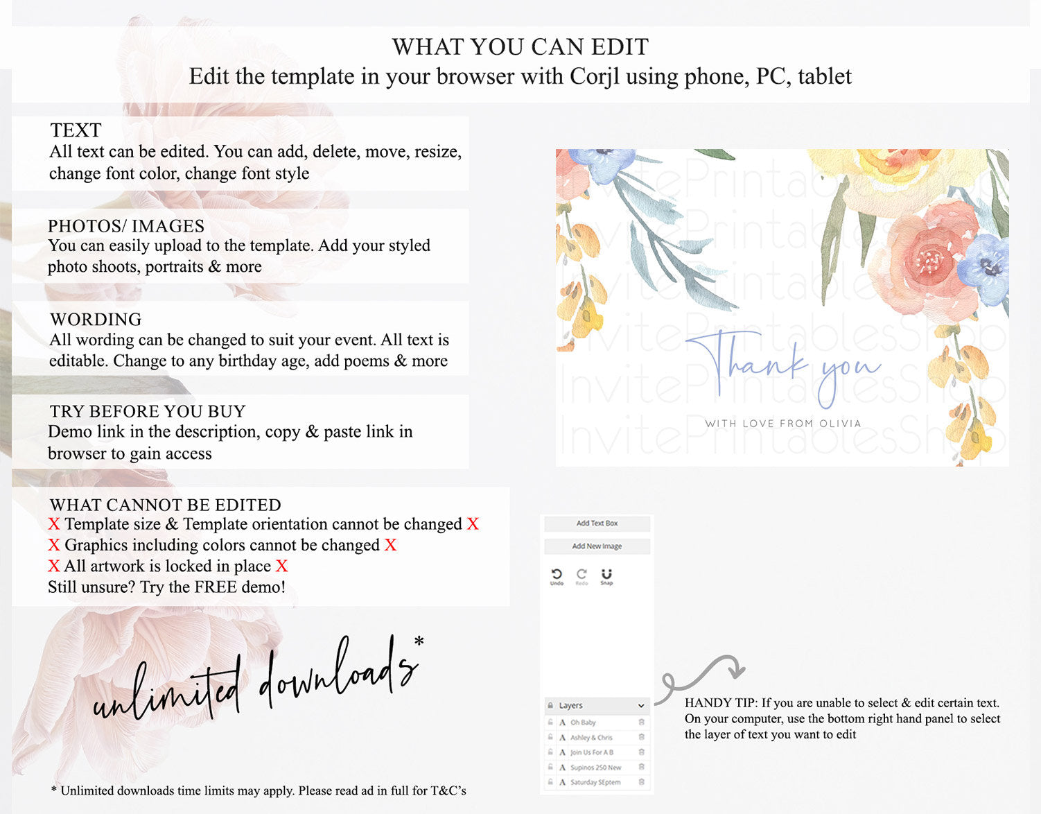 • After purchase, Corjl emails your editing link. Allow up to 15 minutes for delivery.