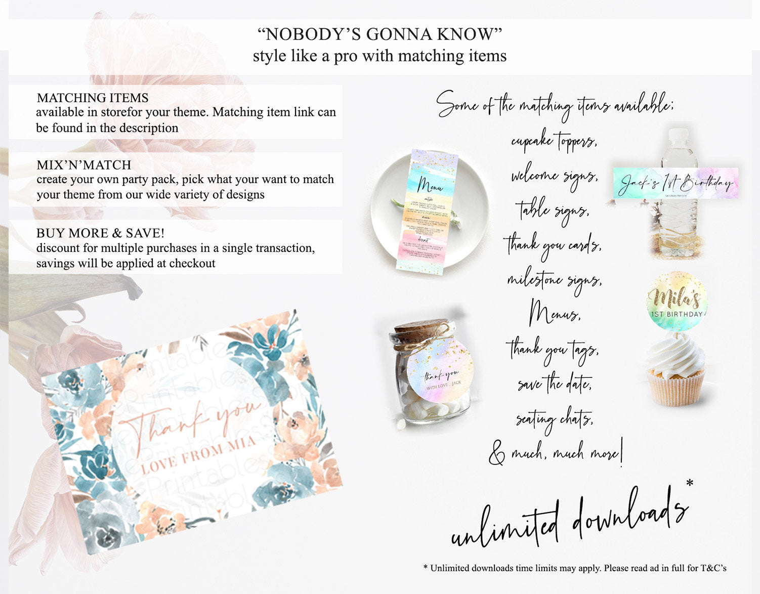 Secret Garden Thank You Wildflower Thank You Card Pastel Flower Garden Birthday Thank You Card Boho Floral Teacher Thank You Card D10190
