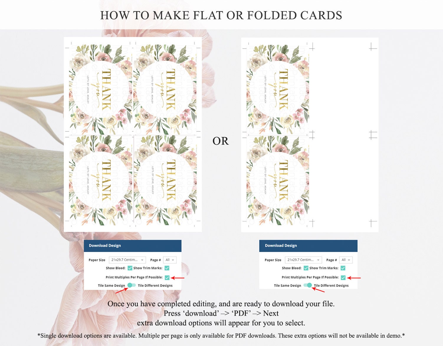 • Custom changes to artwork are not provided on existing templates.