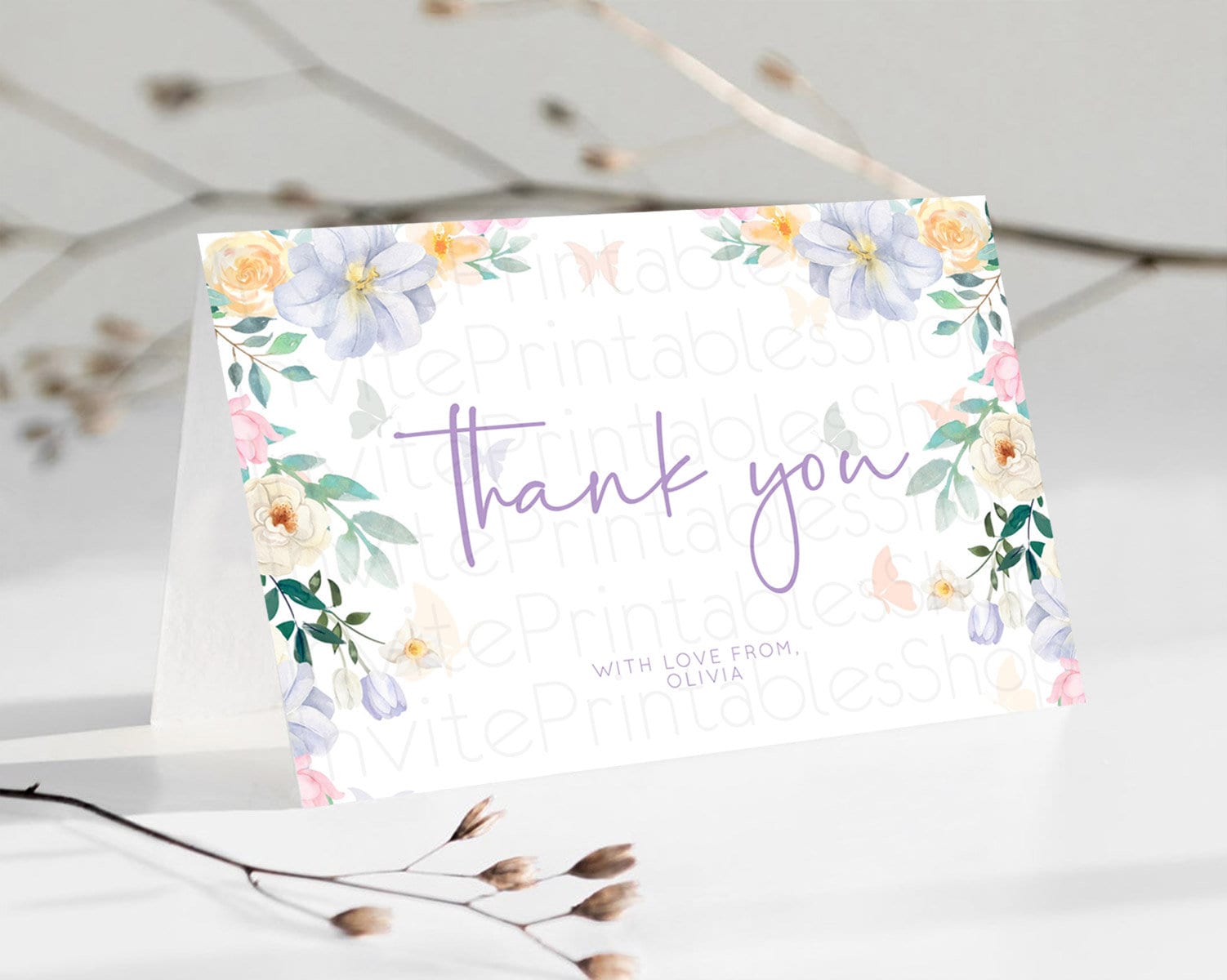 Secret Garden Thank You Wildflower Thank You Card Pastel Flower Garden Birthday Thank You Card Boho Floral Teacher Thank You Card D10472
