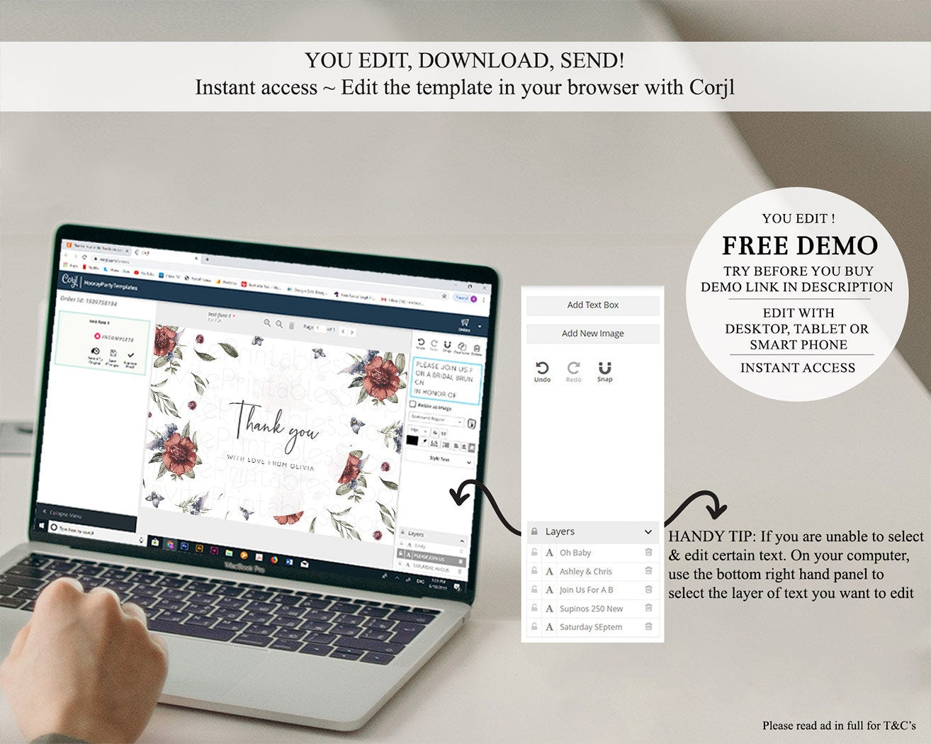 • After purchase, Corjl emails your editing link. Allow up to 15 minutes for delivery.