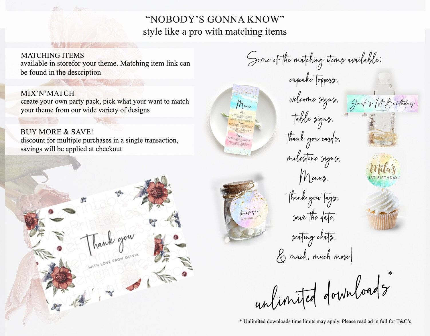 Secret Garden Thank You Wildflower Thank You Card Pastel Flower Garden Birthday Thank You Card Boho Floral Teacher Thank You Card D10503