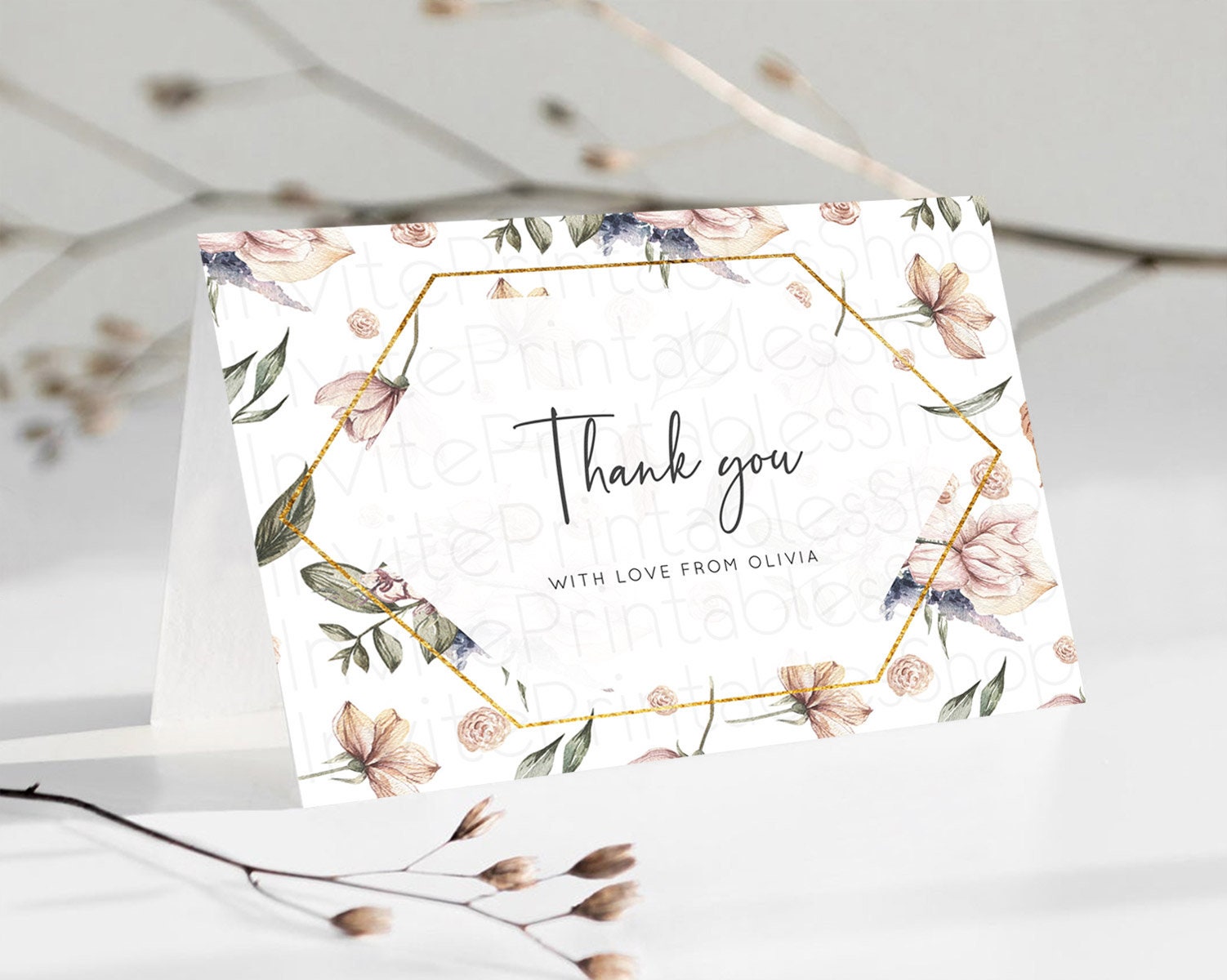 Secret Garden Thank You Wildflower Thank You Card Pastel Flower Garden Birthday Thank You Card Boho Floral Teacher Thank You Card D10504