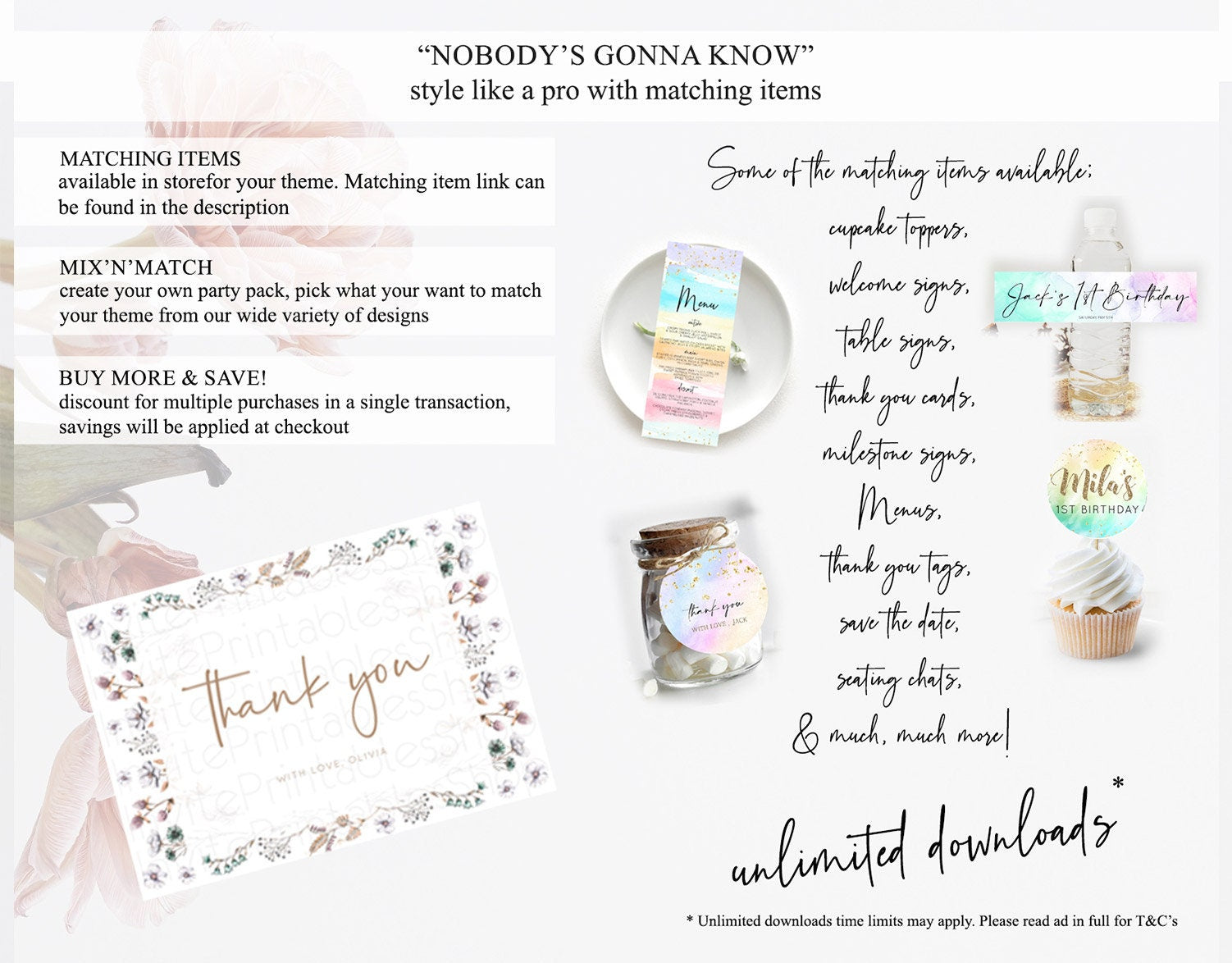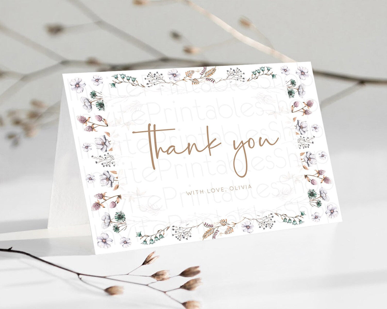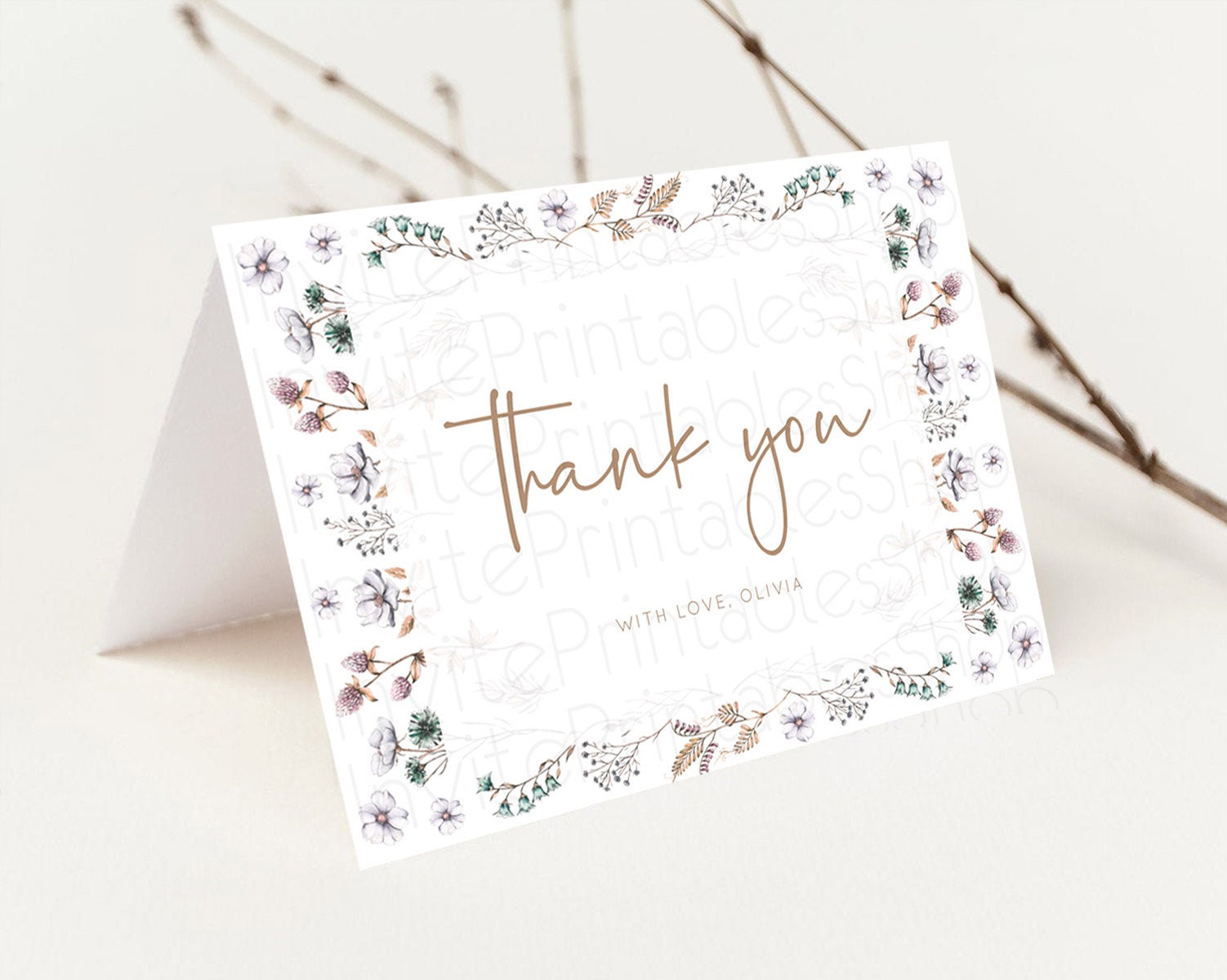 Secret Garden Thank You Wildflower Thank You Card Pastel Flower Garden Birthday Thank You Card Boho Floral Teacher Thank You Card D10604