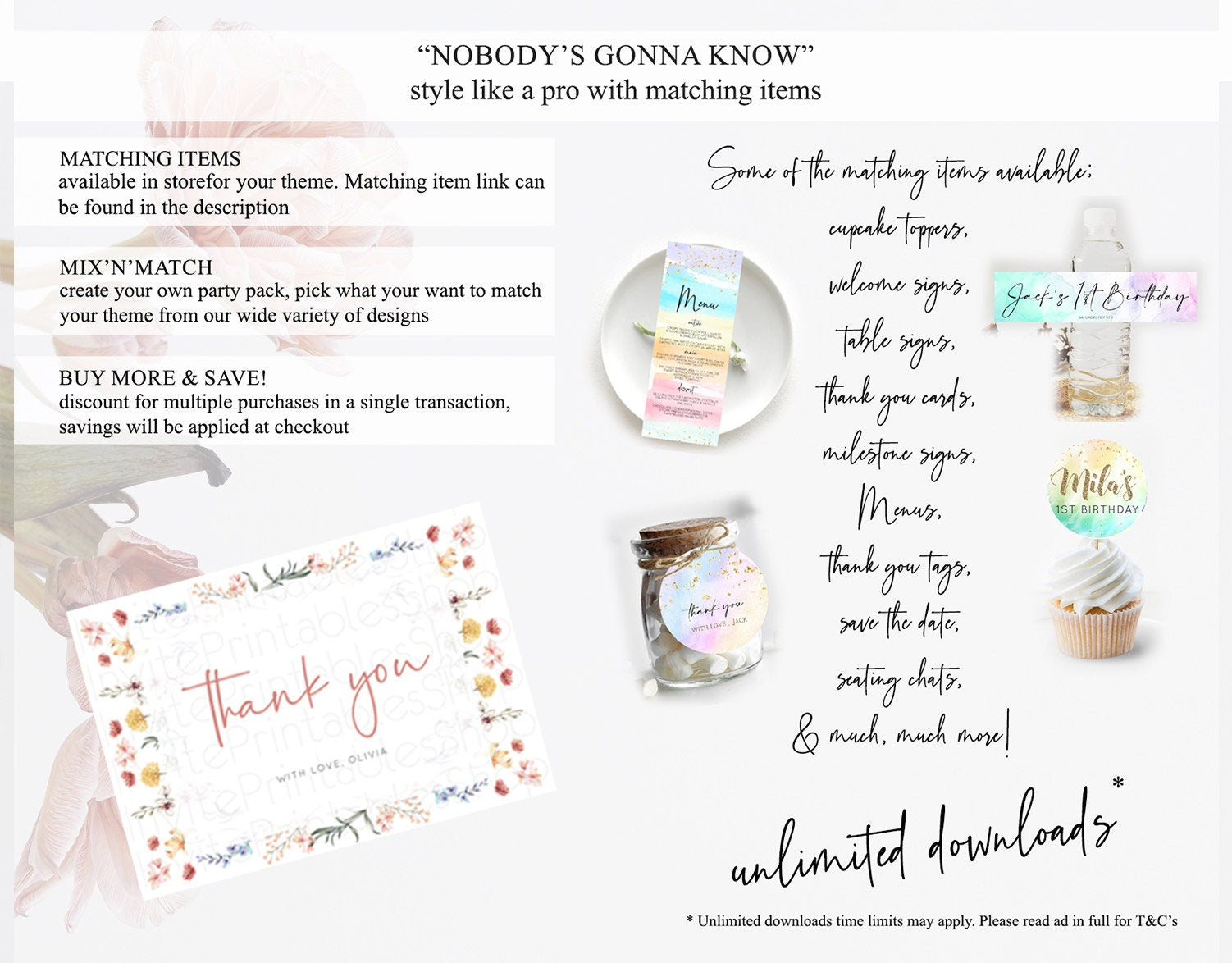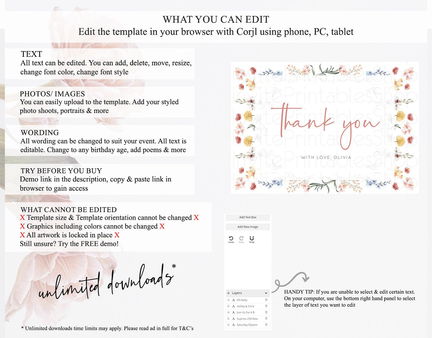Secret Garden Thank You Wildflower Thank You Card Pastel Flower Garden Birthday Thank You Card Boho Floral Teacher Thank You Card D10682