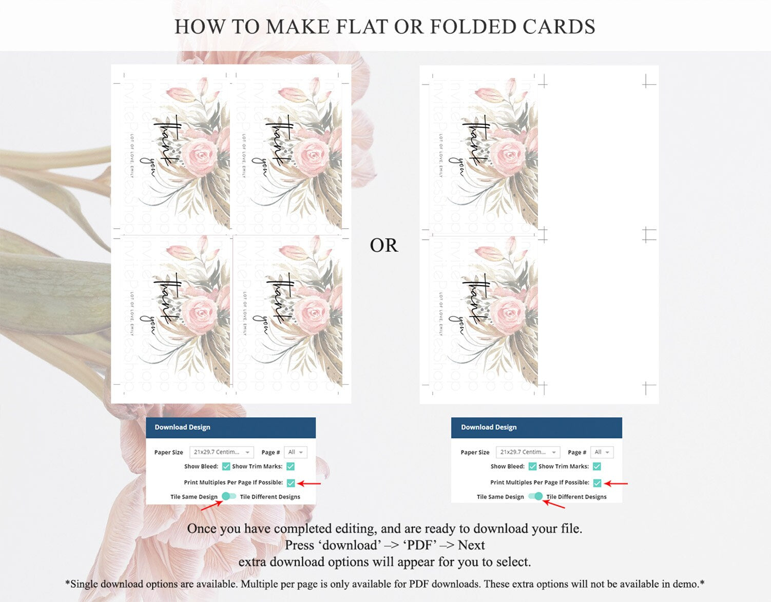 • Custom changes to artwork are not provided on existing templates.