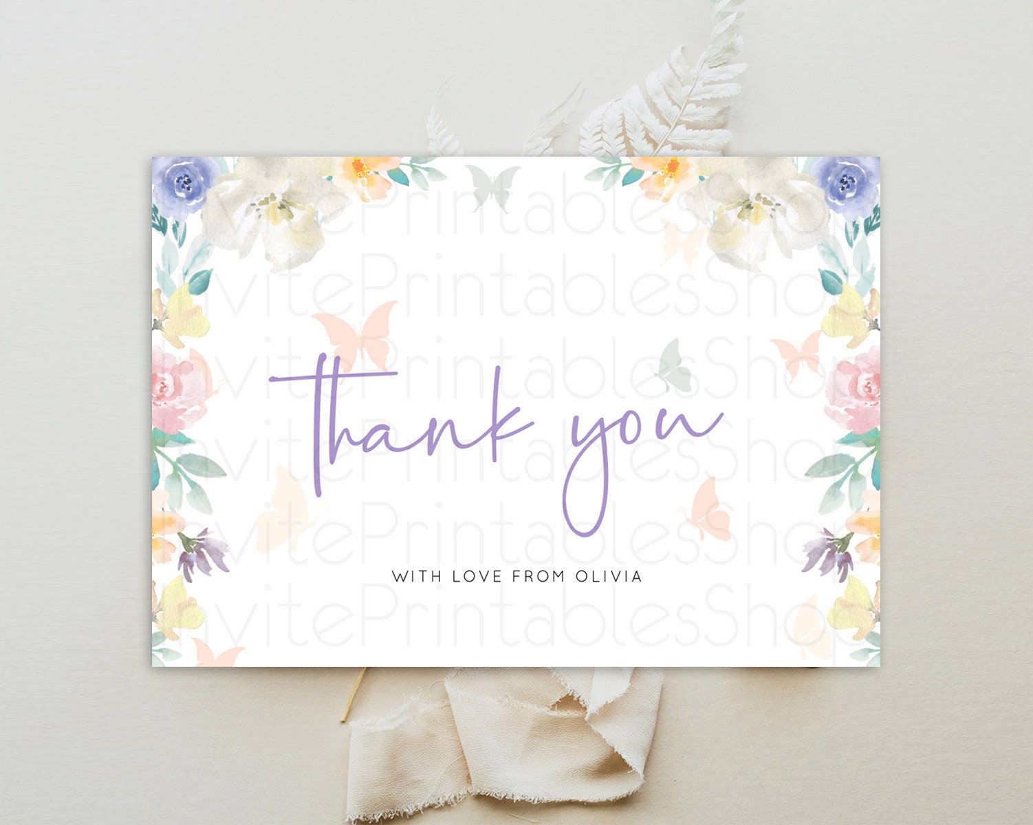 Secret Garden Thank You Wildflower Thank You Card Pastel Flower Garden Birthday Thank You Card Boho Floral Teacher Thank You Card D10710