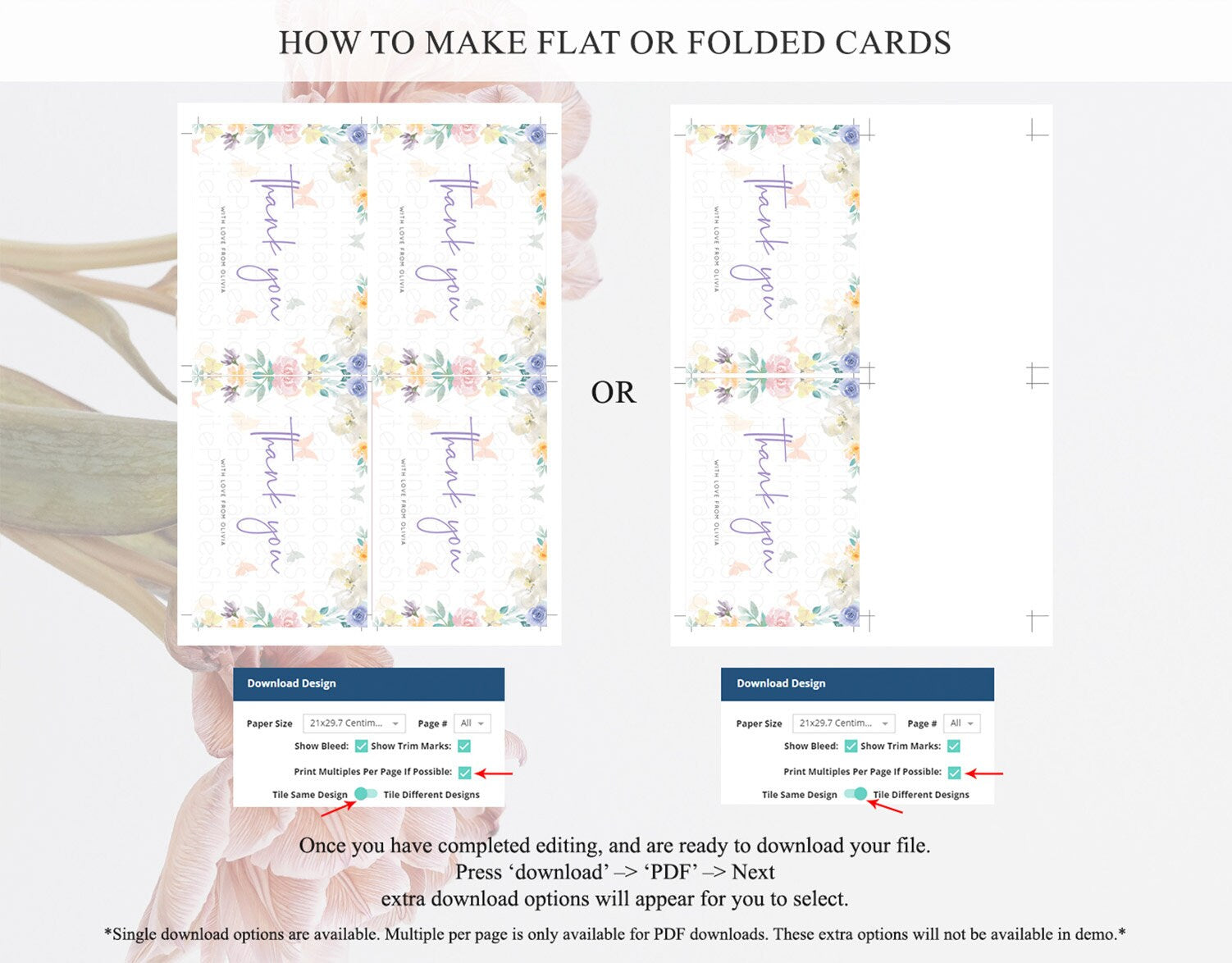 • Custom changes to artwork are not provided on existing templates.
