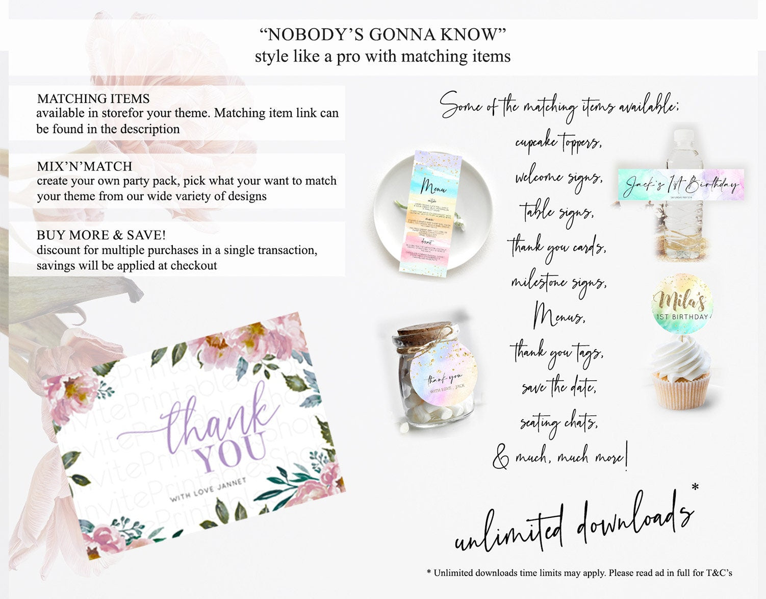 Secret Garden Thank You Wildflower Thank You Card Pastel Flower Garden Birthday Thank You Card Boho Floral Teacher Thank You Card D10729