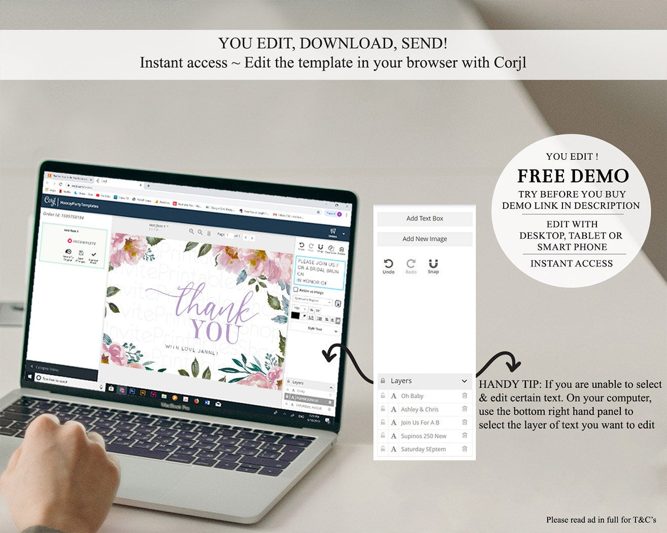 • After purchase, Corjl emails your editing link. Allow up to 15 minutes for delivery.