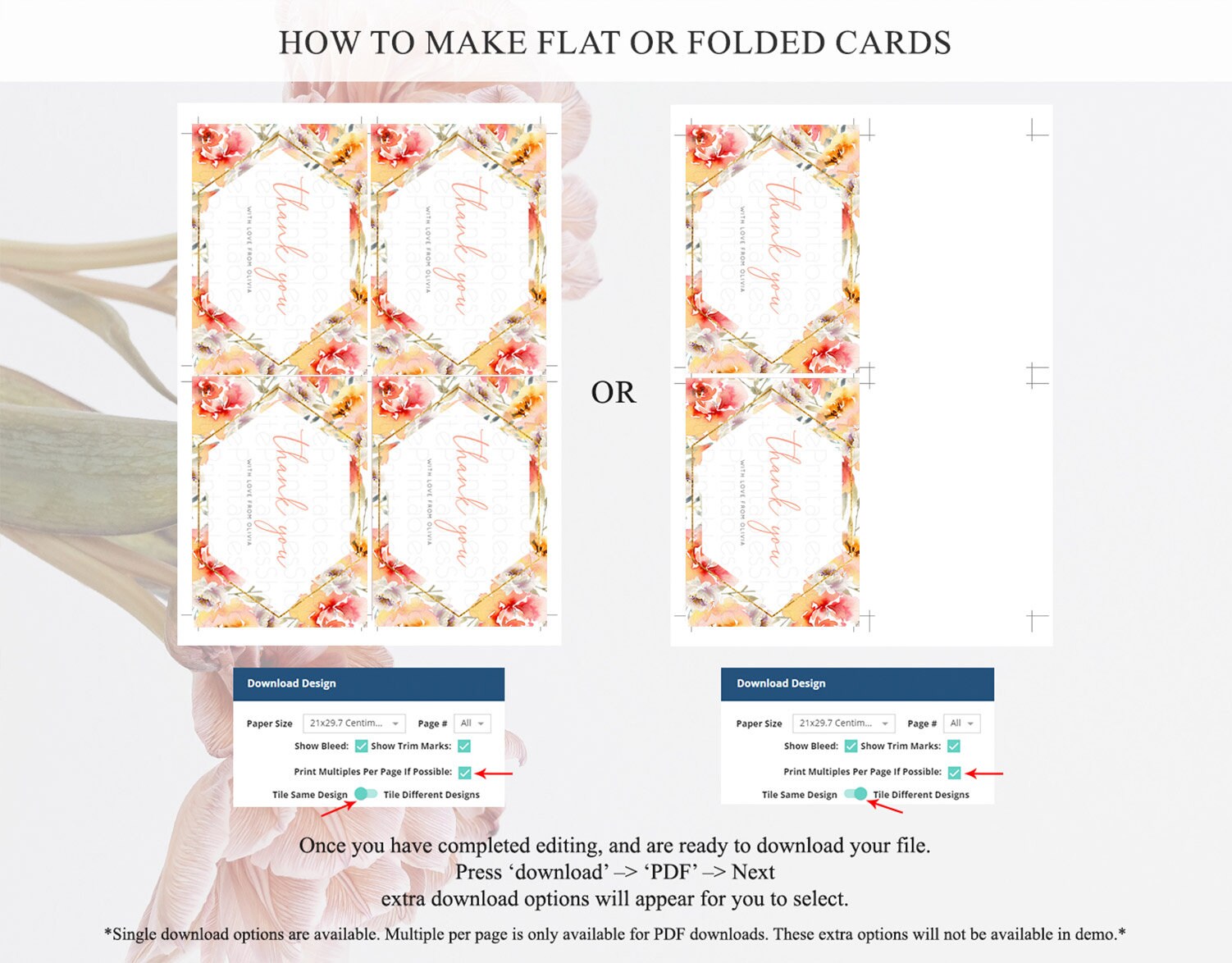 • Custom changes to artwork are not provided on existing templates.