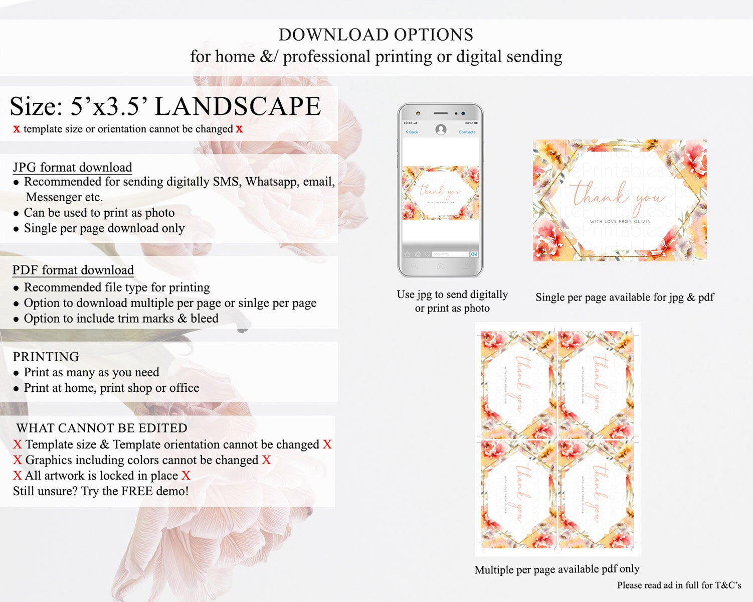 • Template size & orientation cannot be changed. Please use the demo link to confirm this product suits your needs.
