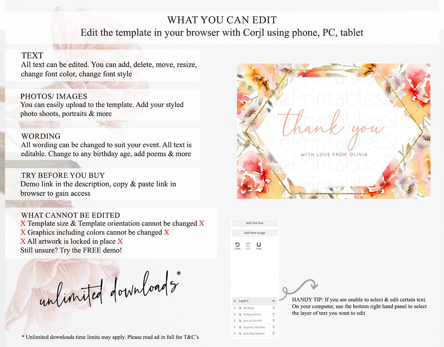 • After purchase, Corjl emails your editing link. Allow up to 15 minutes for delivery.