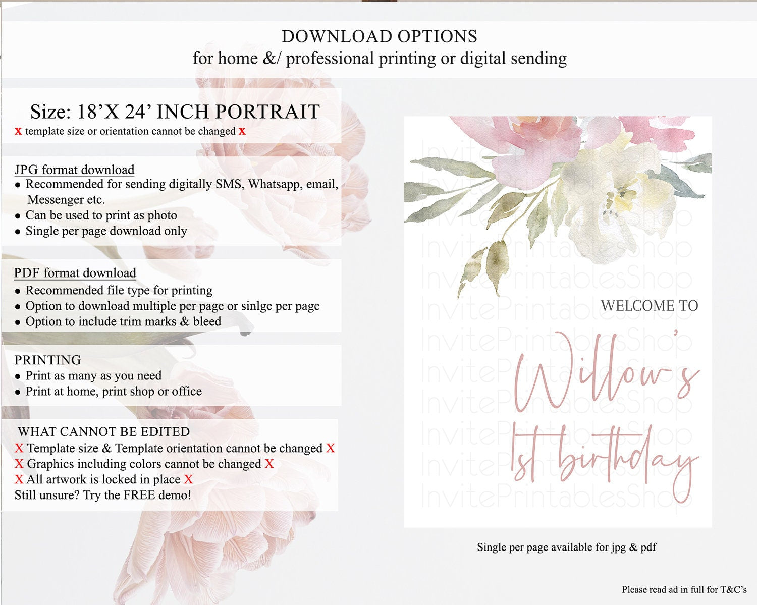 Secret Garden Welcome Sign Wildflower Welcome Board Pastel Flower Garden Welcome Poster Boho Wildflower First Birthday Welcome Sign D10183