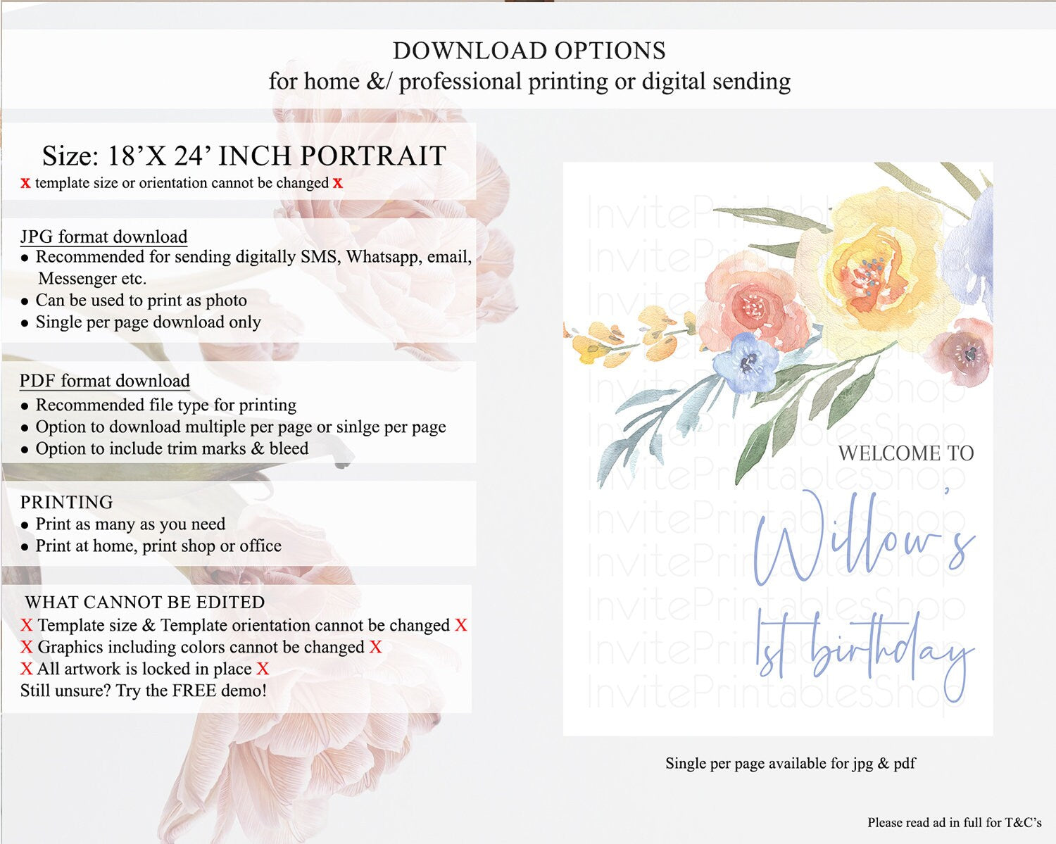 Secret Garden Welcome Sign Wildflower Welcome Board Pastel Flower Garden Welcome Poster Boho Wildflower First Birthday Welcome Sign D10186