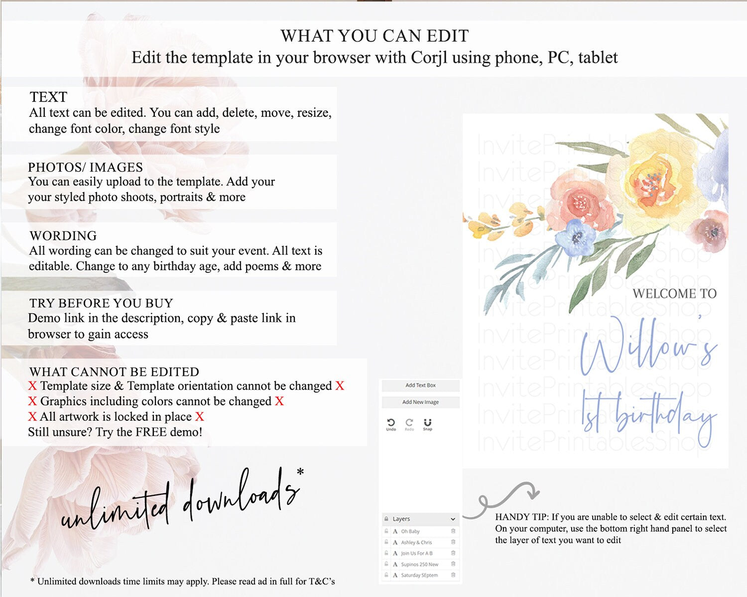 • After purchase, Corjl emails your editing link. Allow up to 15 minutes for delivery.