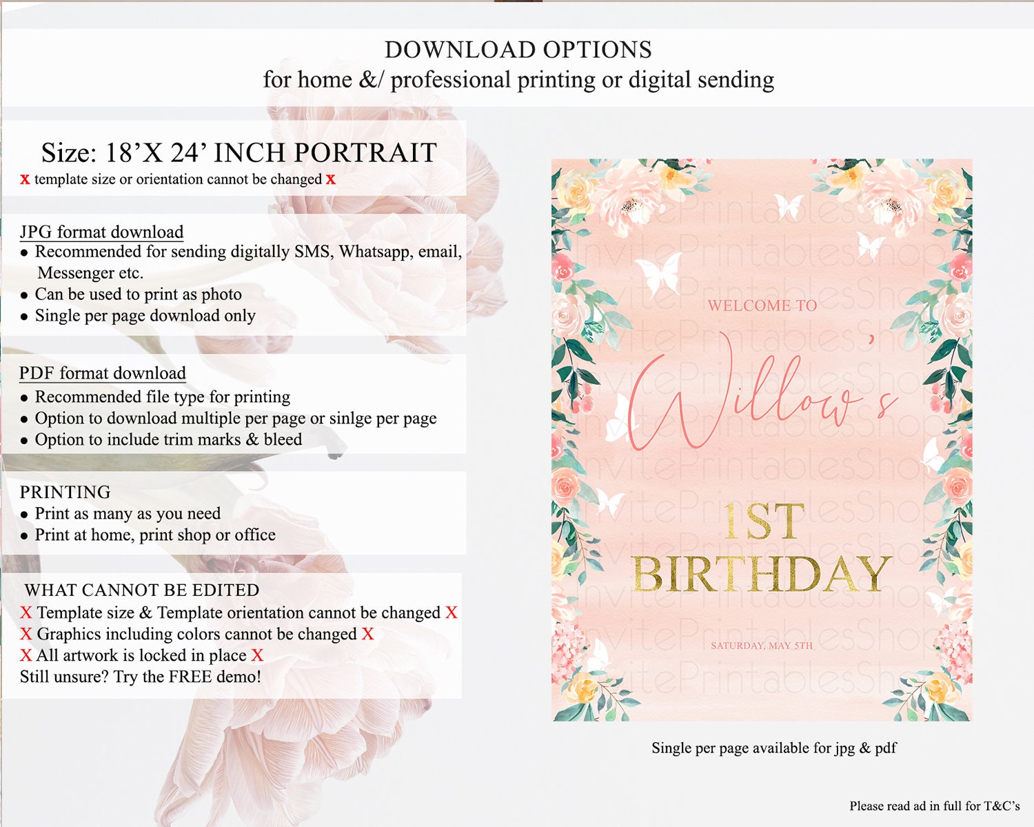 • Template size & orientation cannot be changed. Please use the demo link to confirm this product suits your needs.