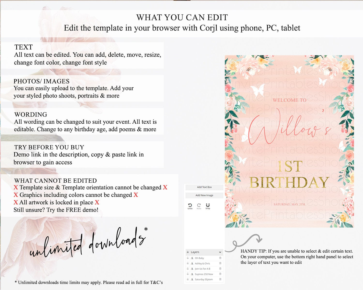 • After purchase, Corjl emails your editing link. Allow up to 15 minutes for delivery.