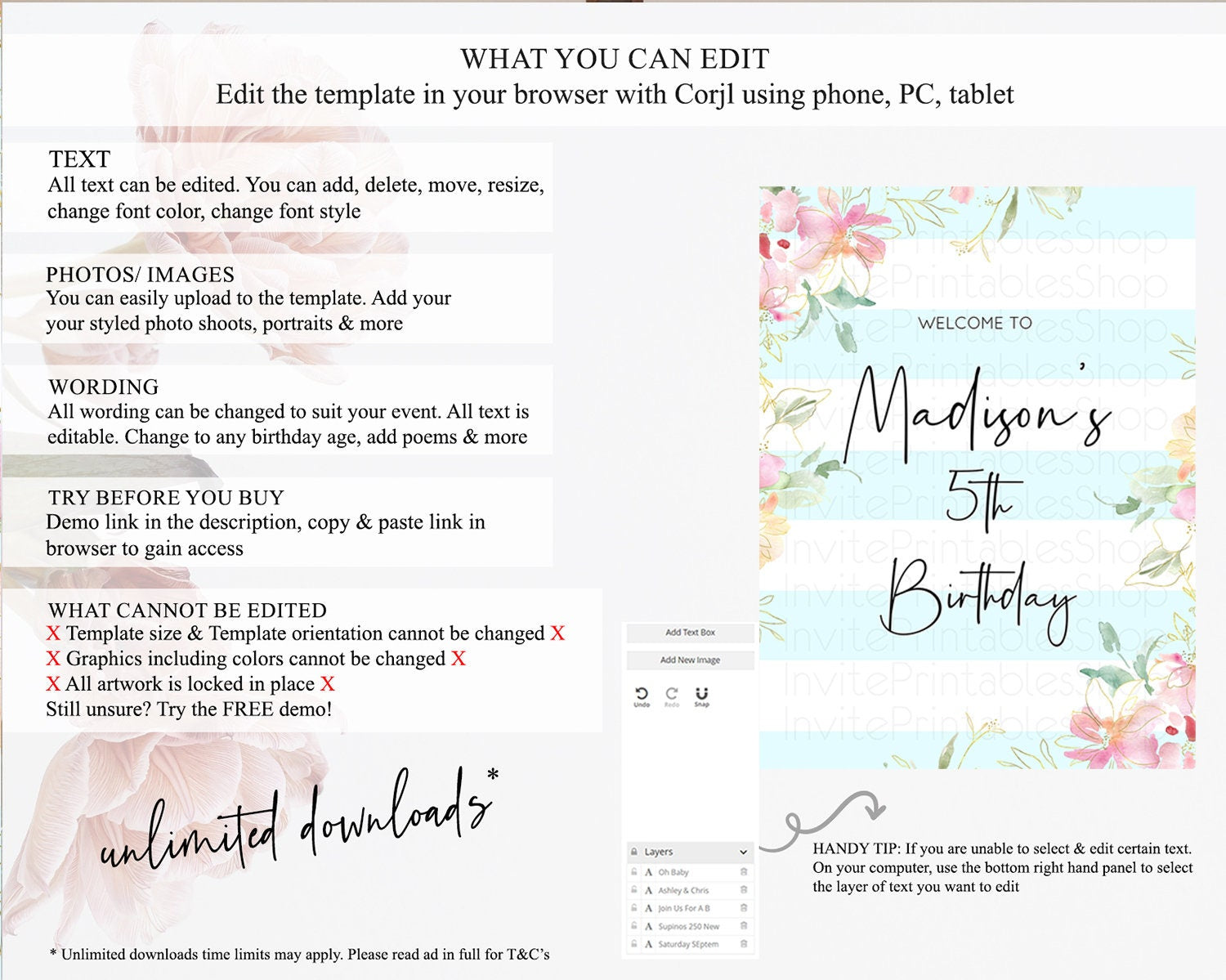 • After purchase, Corjl emails your editing link. Allow up to 15 minutes for delivery.