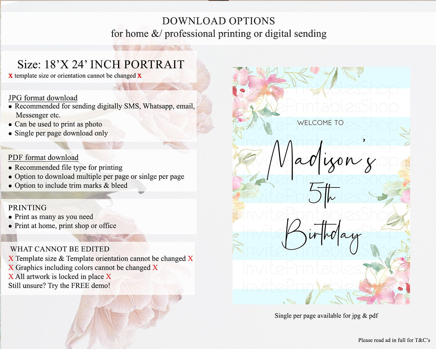 • Template size & orientation cannot be changed. Please use the demo link to confirm this product suits your needs.