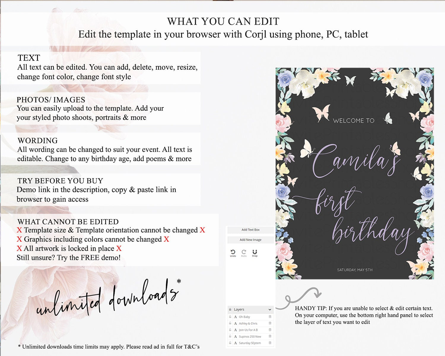 Secret Garden Welcome Sign Wildflower Welcome Board Pastel Flower Garden Welcome Poster Boho Wildflower First Birthday Welcome Sign D10322