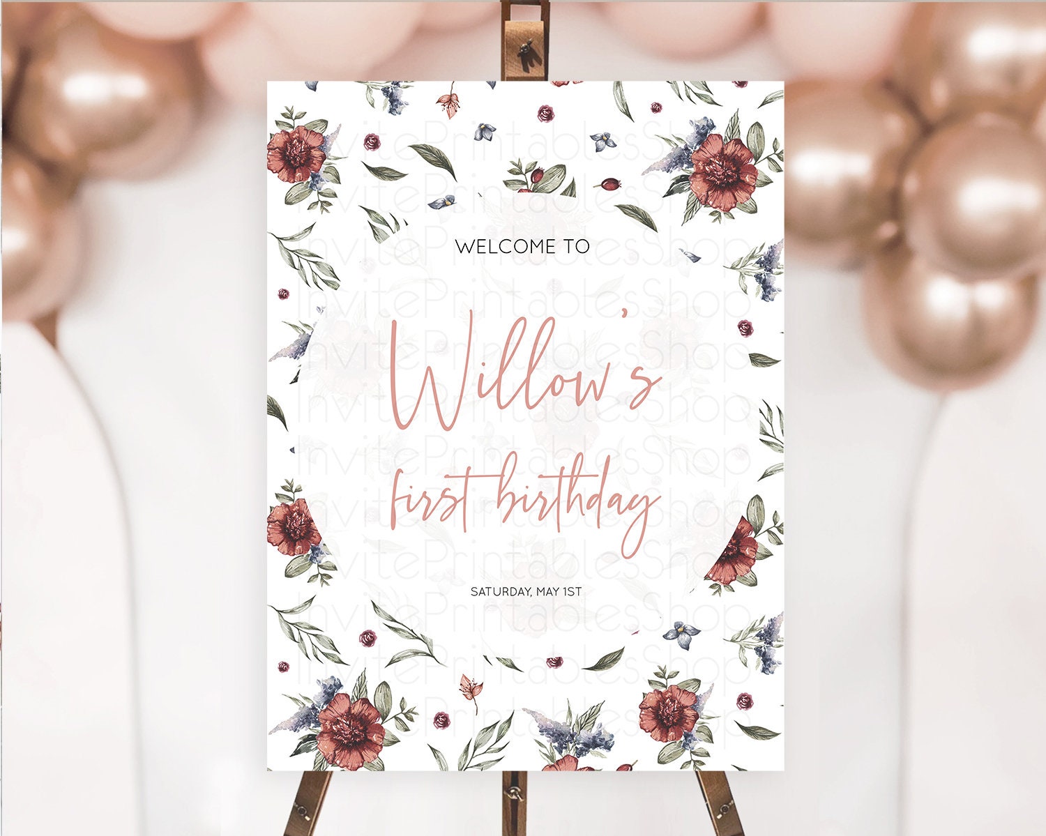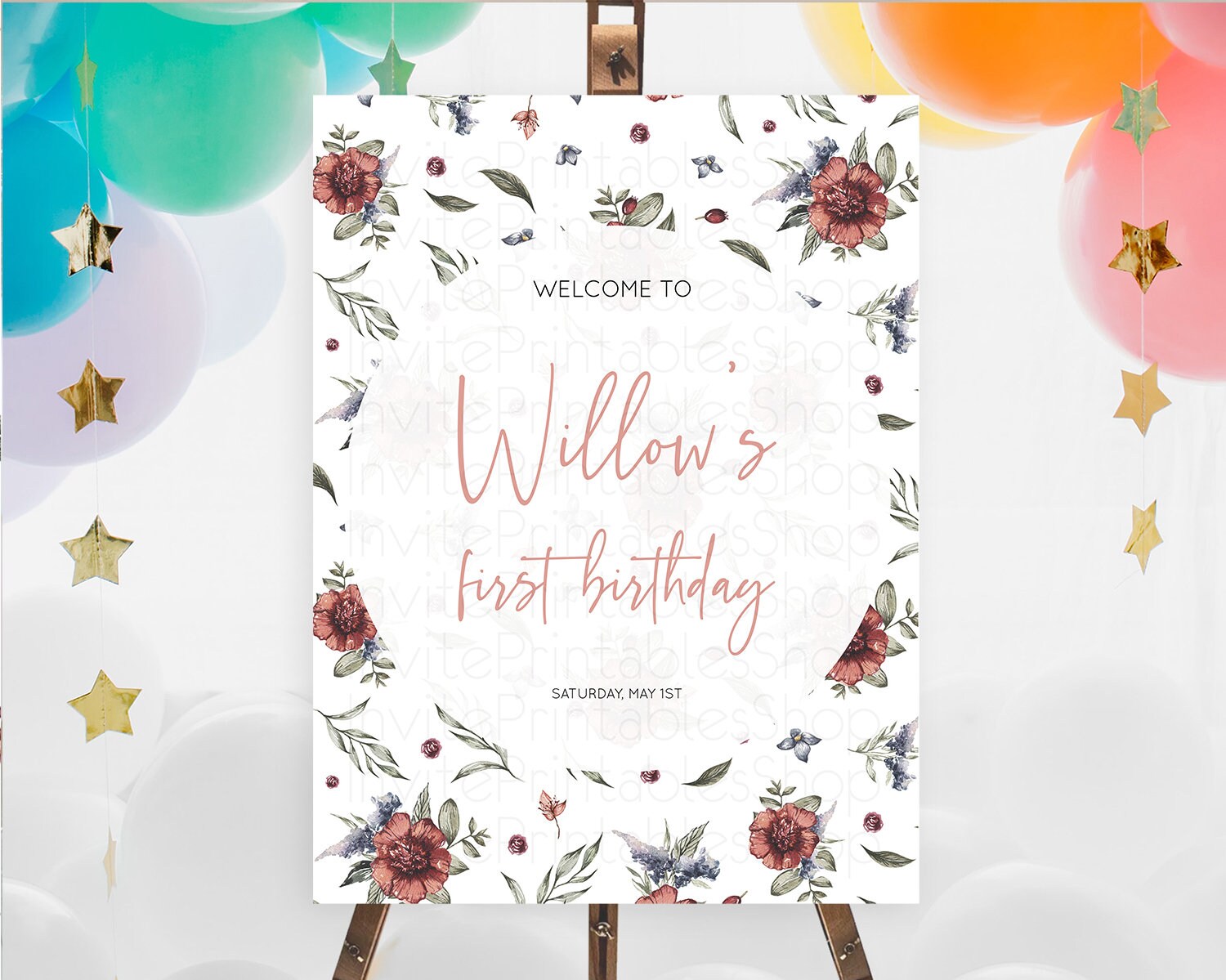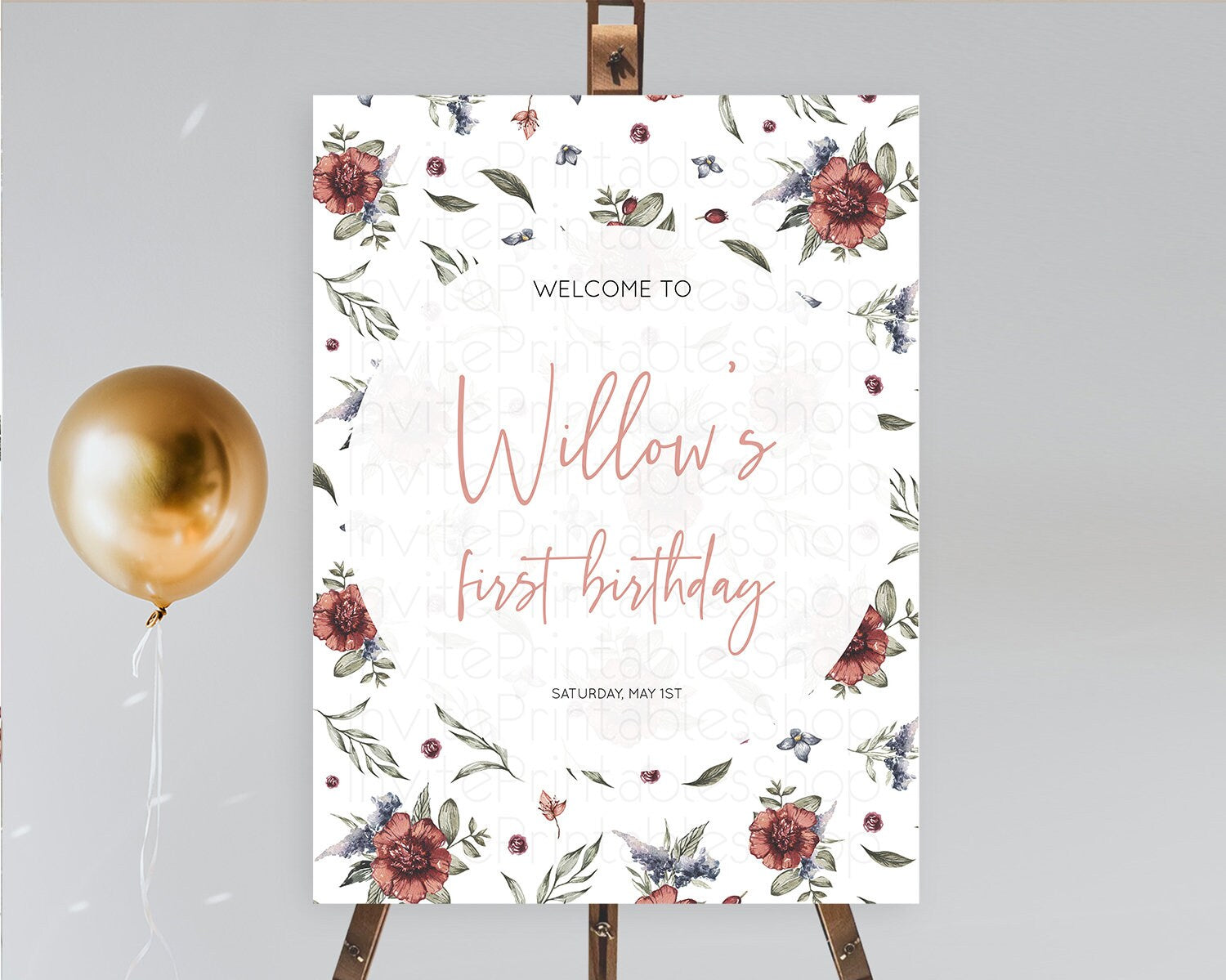 Secret Garden Welcome Sign Wildflower Welcome Board Pastel Flower Garden Welcome Poster Boho Wildflower First Birthday Welcome Sign D10503