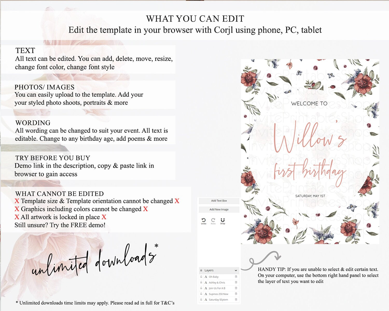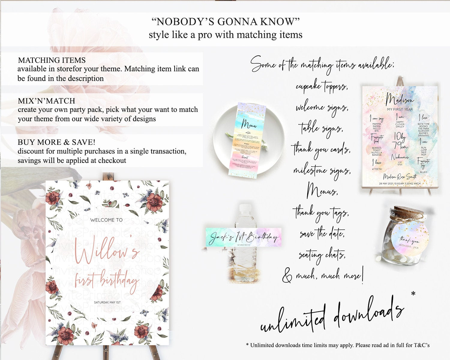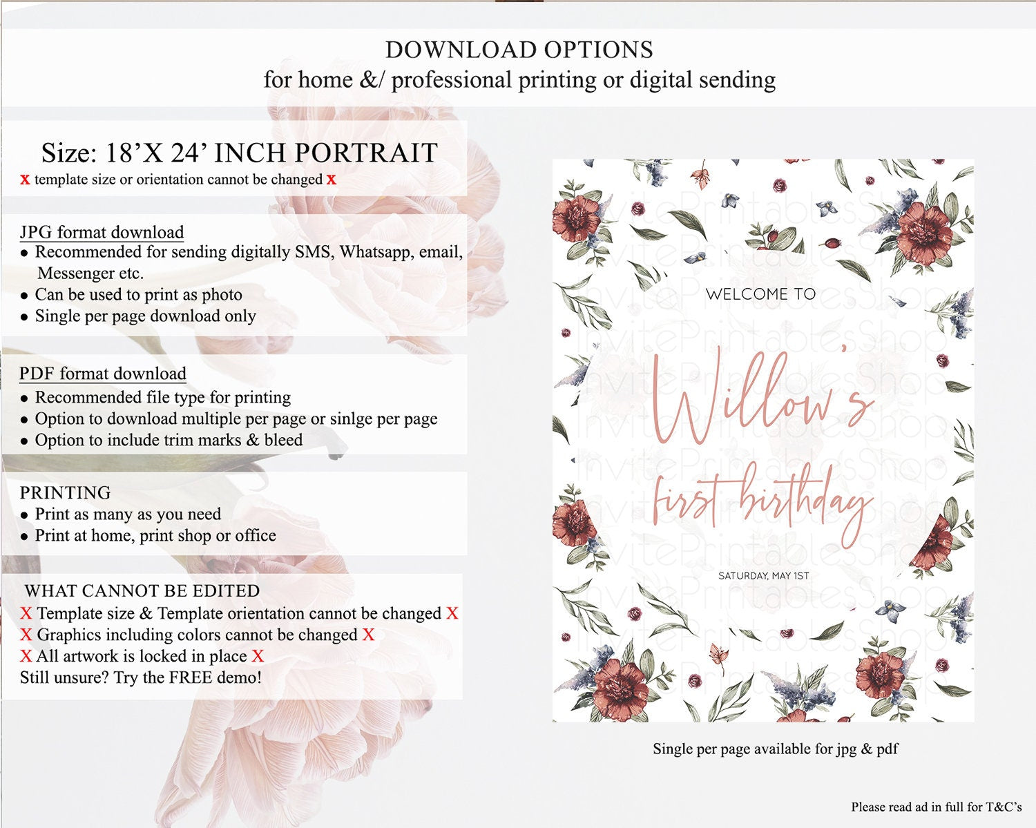 Secret Garden Welcome Sign Wildflower Welcome Board Pastel Flower Garden Welcome Poster Boho Wildflower First Birthday Welcome Sign D10503