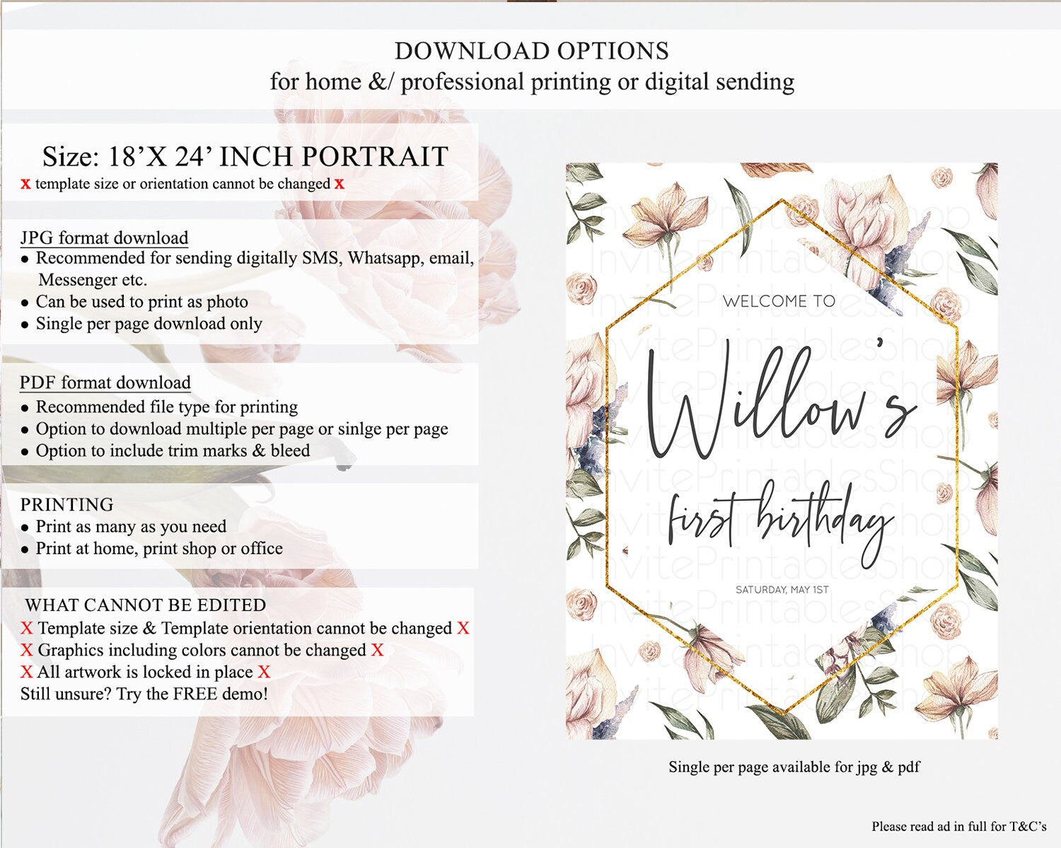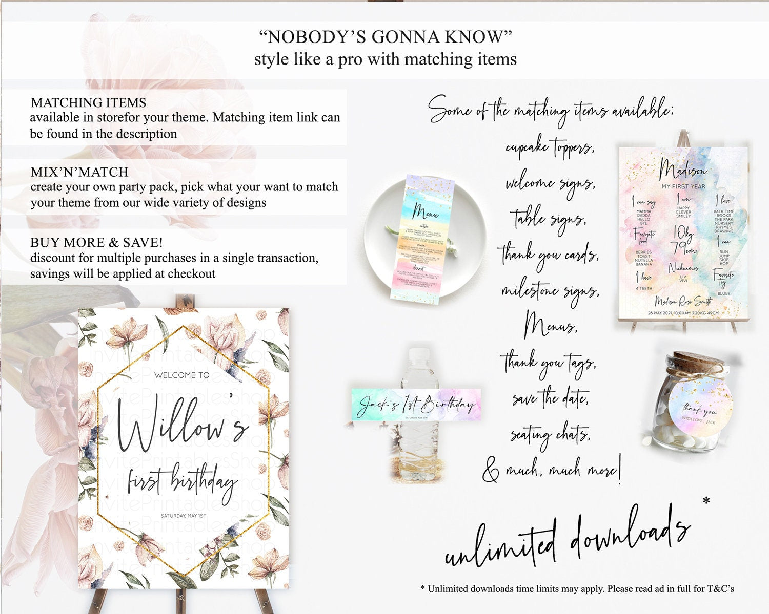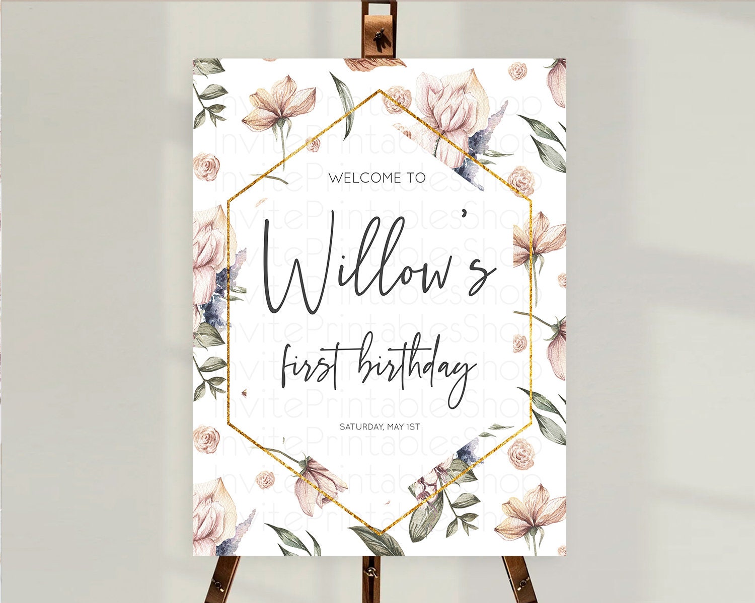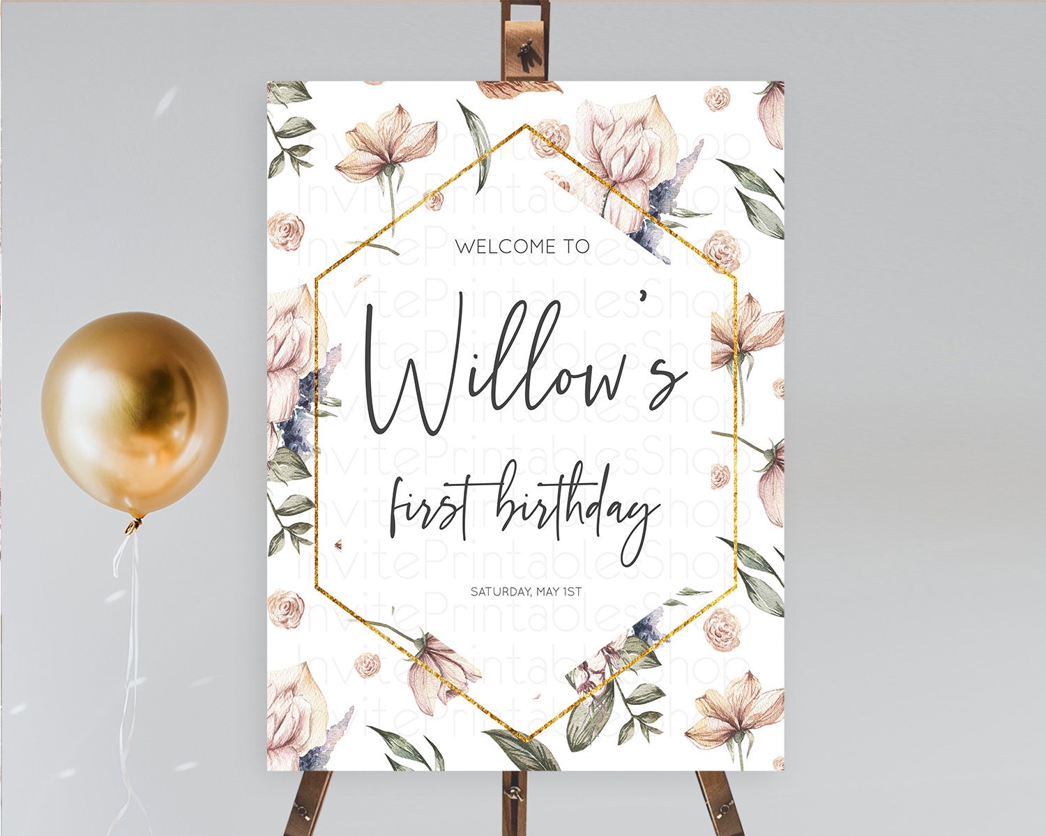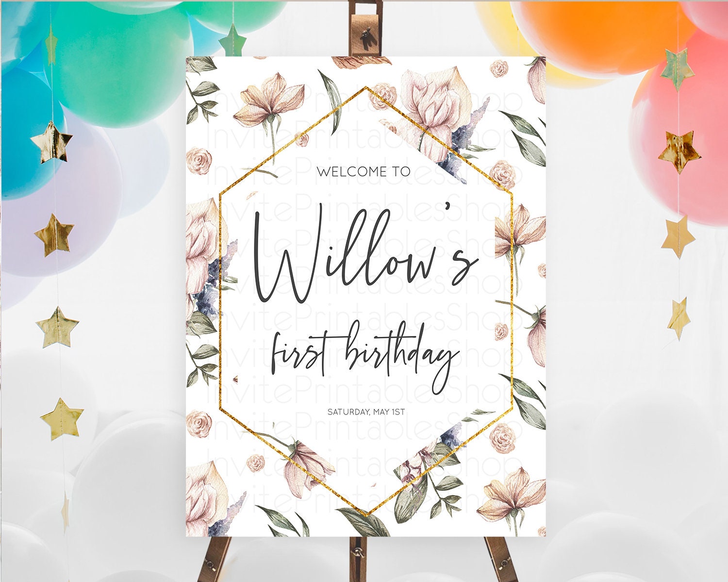 Secret Garden Welcome Sign Wildflower Welcome Board Pastel Flower Garden Welcome Poster Boho Wildflower First Birthday Welcome Sign D10504