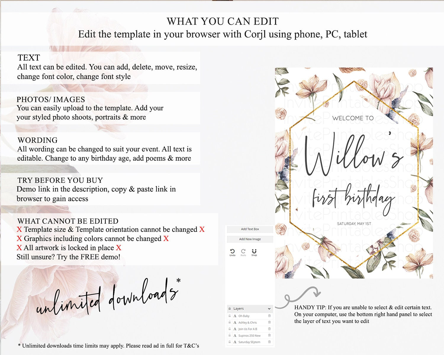 • After purchase, Corjl emails your editing link. Allow up to 15 minutes for delivery.