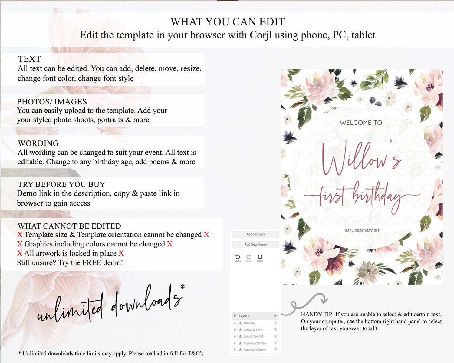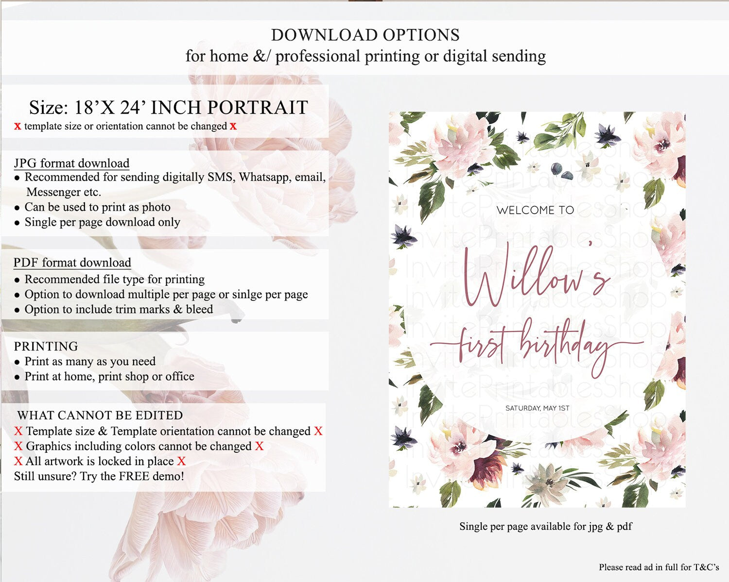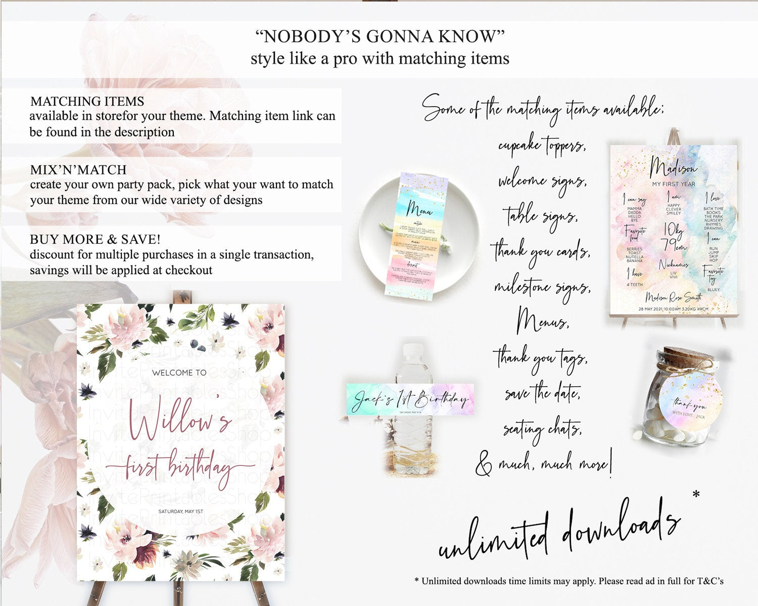 Secret Garden Welcome Sign Wildflower Welcome Board Pastel Flower Garden Welcome Poster Boho Wildflower First Birthday Welcome Sign D10538